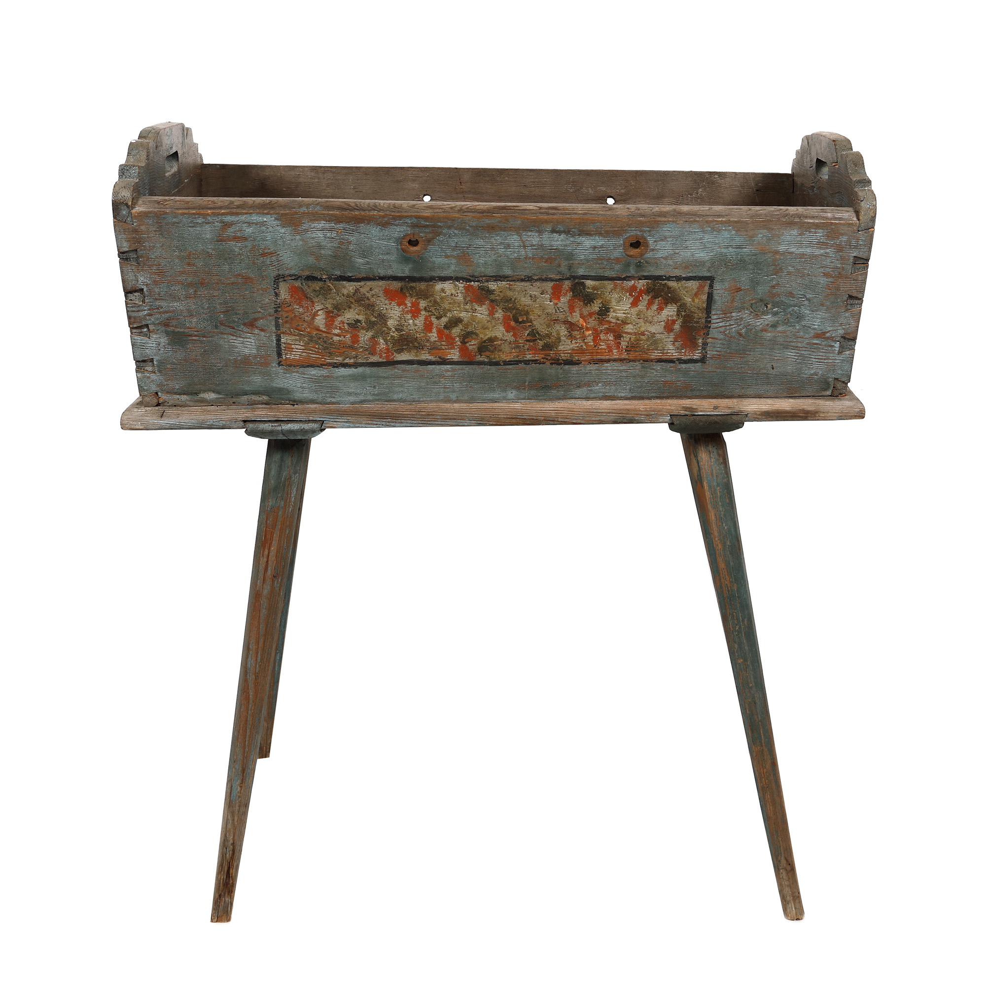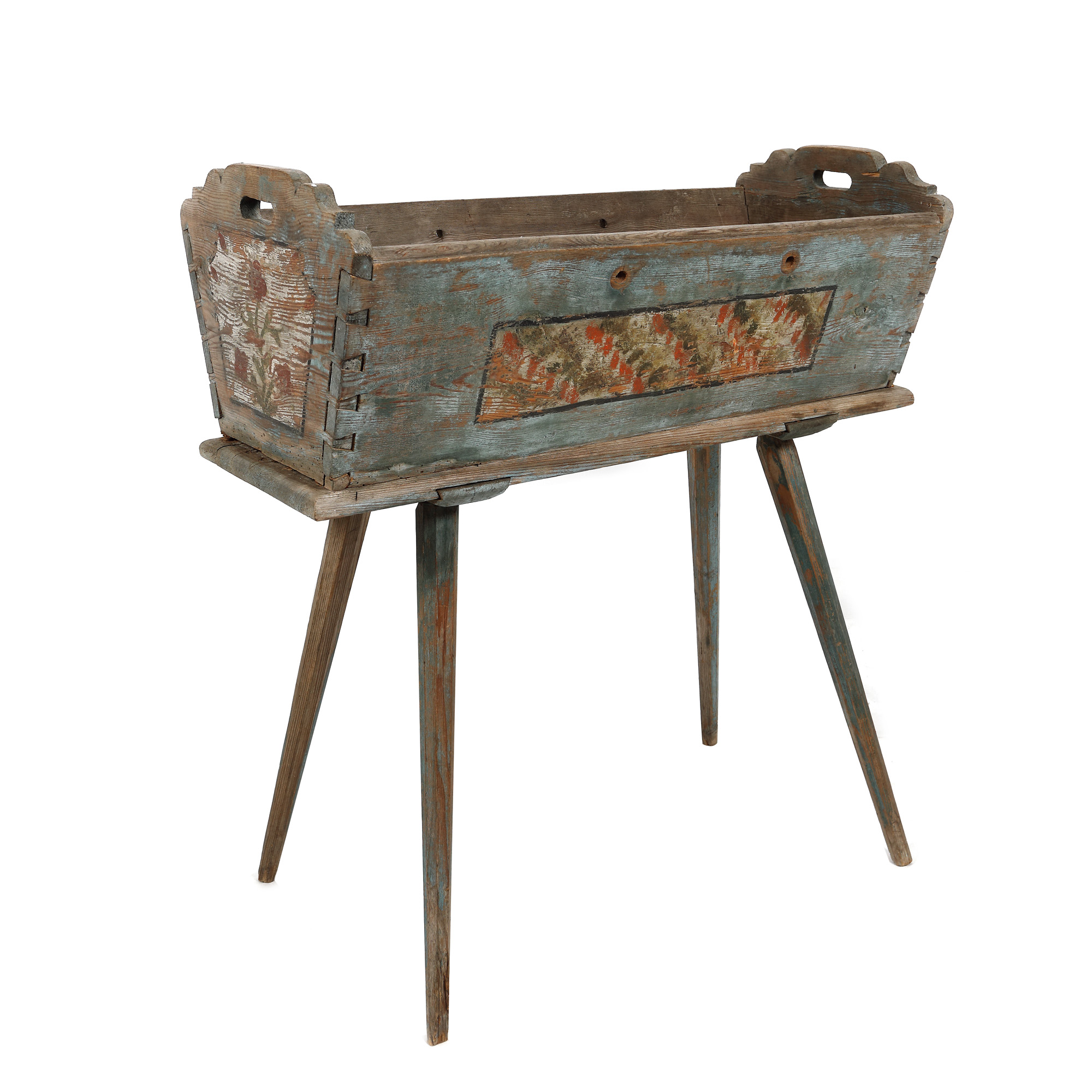 97. Pătuț săsesc din lemn pictat, pentru copii, decorat cu motive florale, sfârșitul sec. XIX