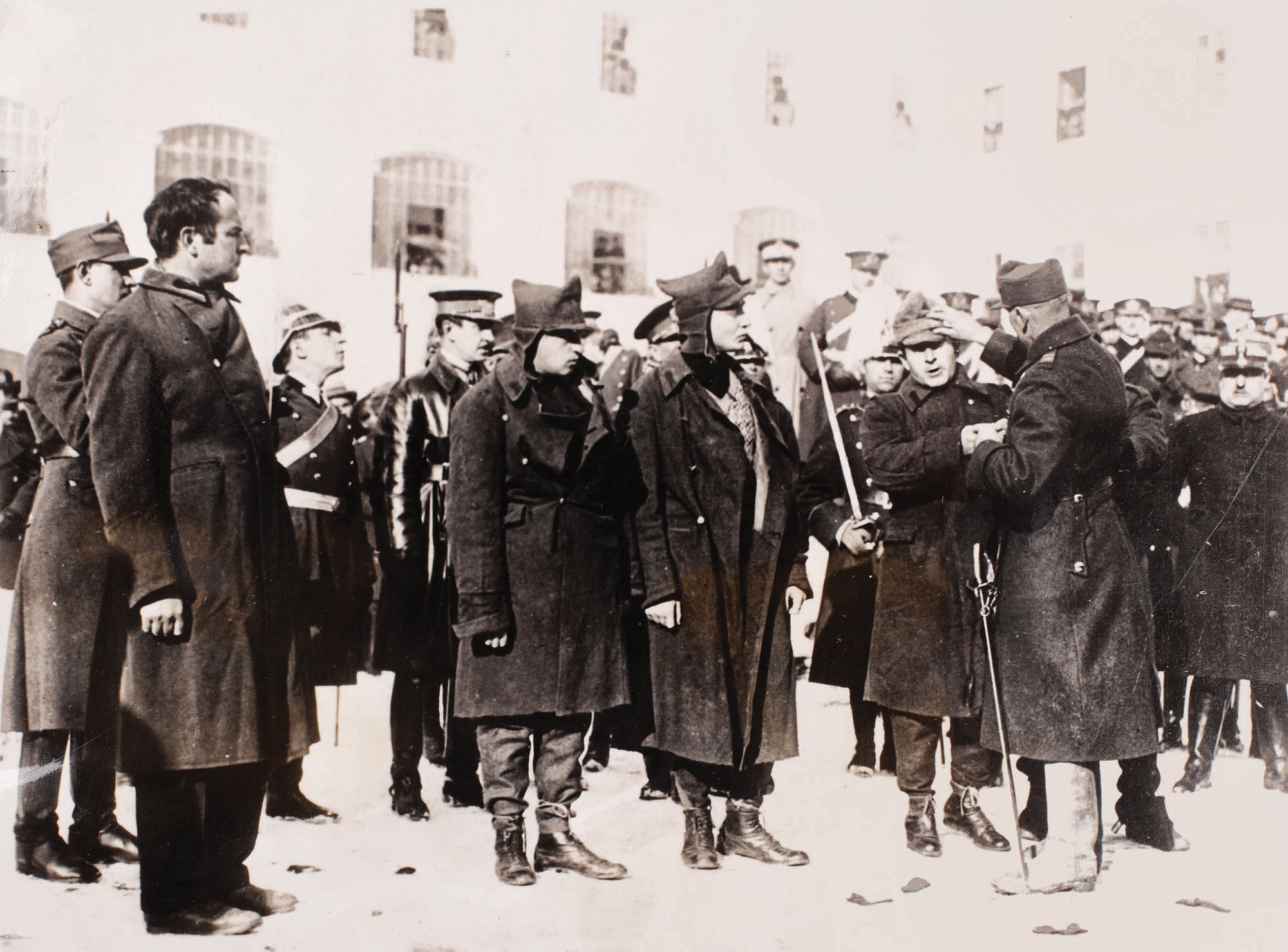 236. Fotografie de presă surprinzând momentul dezonorării unor ofiţeri români pe motiv de trădare, 29 ianuarie 1932