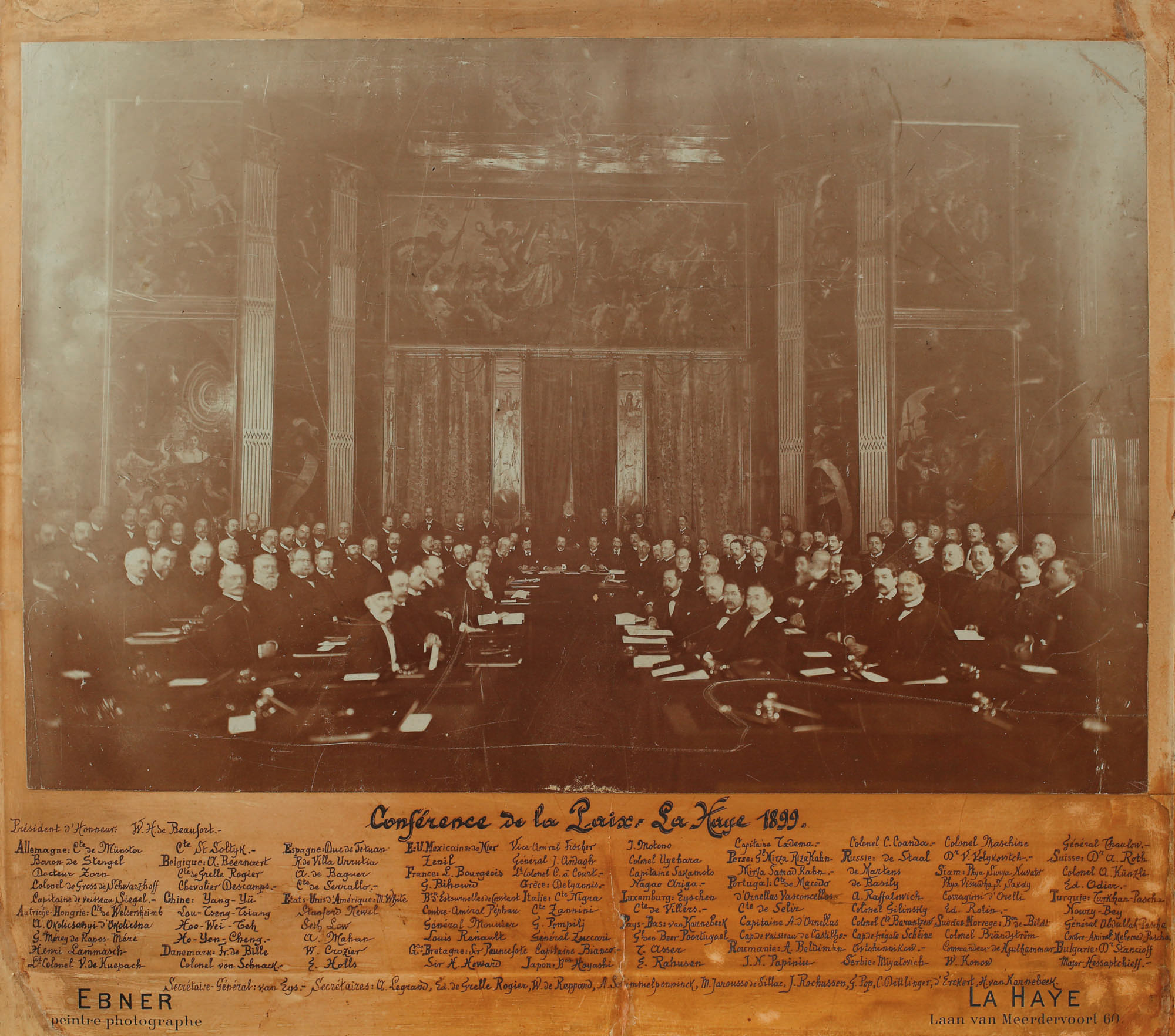 242. Fotografie originală, surprinzând prima Conferinţă de la Haga, la care a participat şi Regatul României, 1899, piesă inedită, de colecţie