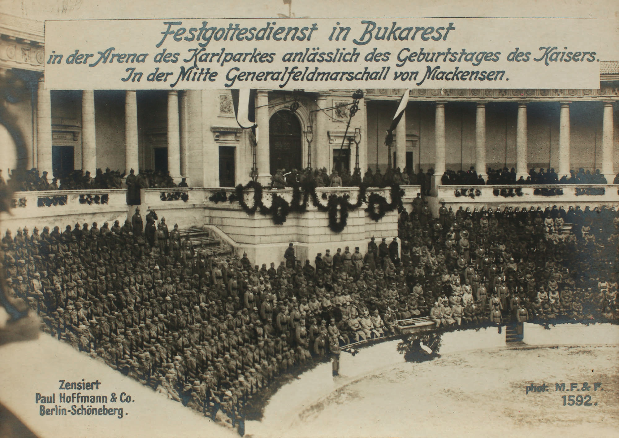 240. Fotografie surprinzând festivităţile trupelor germane împreună cu mareşalul von Mackensen din parcul Carol din Bucureşti, organizate cu ocazia zilei de naştere a Kaiserului, Bucureşti, 1918