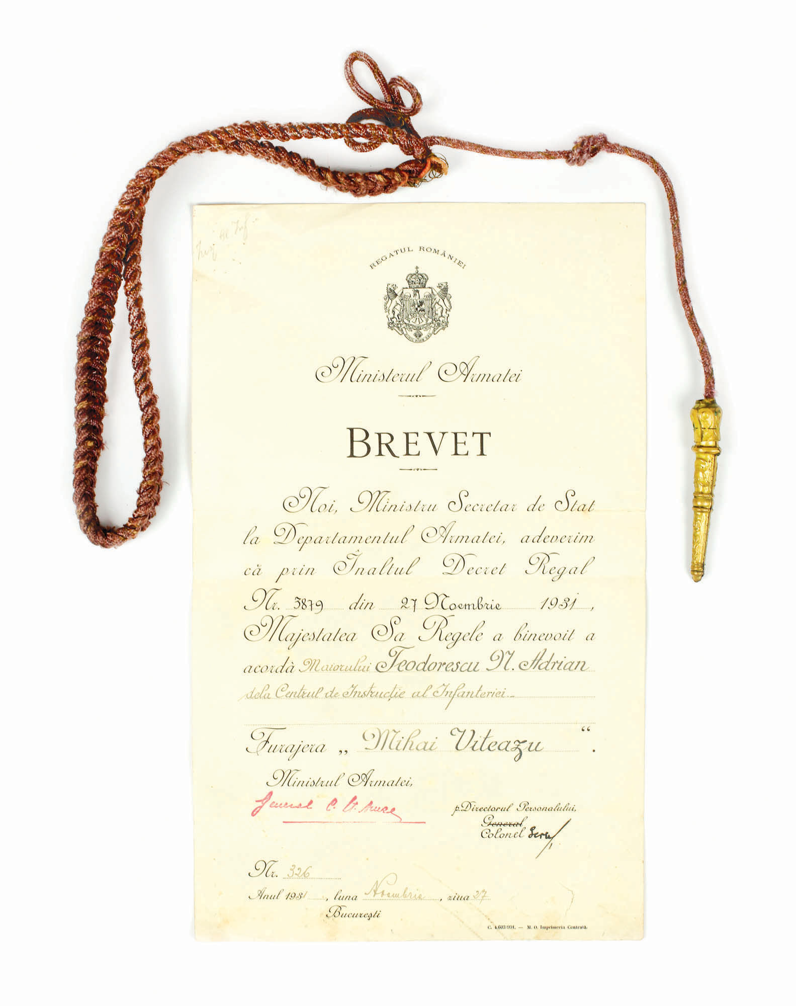 188. Furajeră, "Ordinul Mihai Viteazul", însoţită de brevet de acordare