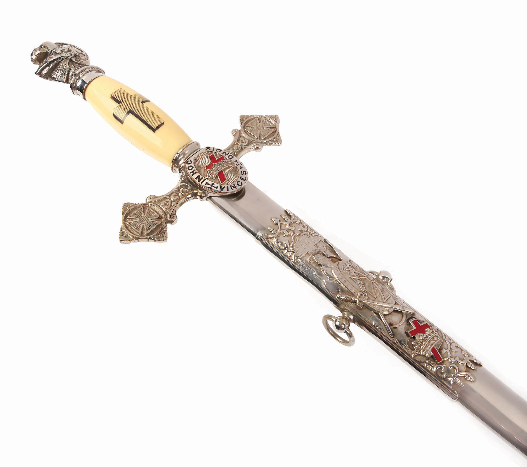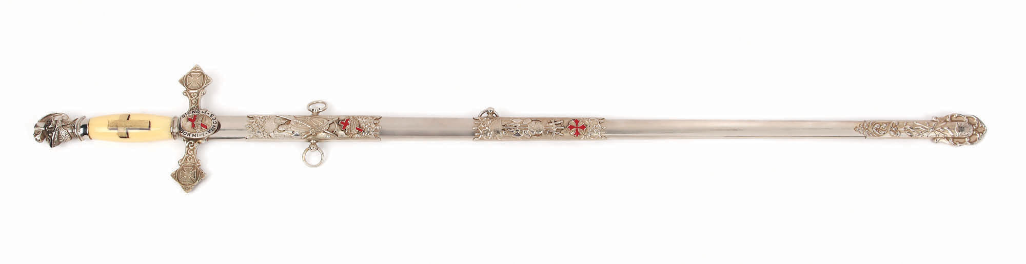 155. Sabie masonică pentru ceremonie, decorată cu crucea de Malta, în teacă originală, începutul sec. XX