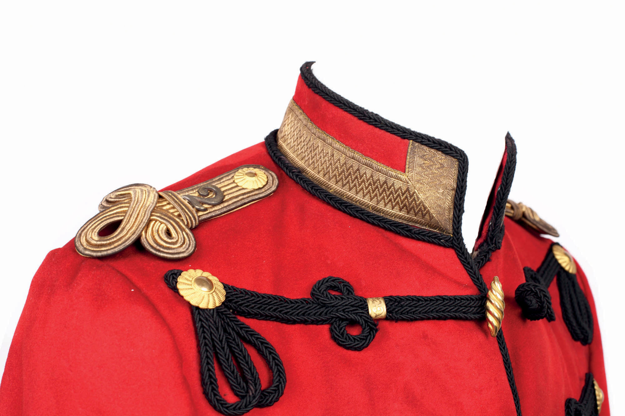 O piesă excepţională, de colecţie, această tunică a aparţinut unui maior ce a participat la Primul Război Mondial. Ofiţerii din regimentul 2 Roşiori, făceau parte din Corpul de Armată cu reşedinţa în Bucureşti, cuprinzând teritoriile Argeş, Muscel, Dâmboviţa, Teleorman, Vlaşca şi Ilfov, încadrându-se în Armata Permanentă. La data de 1 septembrie 1869 se înfiinţează Regimentul de Roşiori, la tabăra de Furceni, în 1871 se înfiinţează Regimentul 2 Roşiori, urmând să participe activ în Războiul de Independeţă al României (1877-1878) la bătăliile de la Plevna, Griviţa şi Vidin. Piesa de faţă a aparţinut cel mai probabil unui ofiţer ce a luptat în Primul Război Mondial, participând în eroica luptă de la marginea satului Prunaru. În 1916, Puterile Centrale urmăreau scoaterea rapidă a României din război, prin blocarea armatei româneşti între Dunăre şi Carpaţi şi cucerirea Bucureştiului. În urma înaintării armatei germane direcția Zimnicea - Drăgănești-Vlașca - București şi a cuceririi satului Prunaru, Brigada 43 mixtă şi Regimentul 2 Roşiori, sub comandamentul generalului Alexandru Referendaru atacă inamicul pe data de 28 noiembrie 1916. În acea dimineaţă a fost dusă o luptă crâncenă între trupele româneşti şi cele germane. Încercând să evite învăluirea diviziei 18 de către armata germană, generalul Alexandru Referendaru a ordonat Regimentului 2 Roşiori atacarea inamicului pentru a crea o diversiune şi pentru a deschide drumul de retragere al diviziei 18 care urma să apere Bucureştiul. Istoricul Constantin Kiriţescu aminteşte de acest moment eroic pe care l-a săvârşit Regimentul 2 Roşiori la Prunaru: "De după garduri, din mărăcinișuri, de pe ferestrele caselor și podurilor, dușmanul, ascuns cu zeci de mitraliere, aruncă o grindină de gloanțe asupra falnicului regiment. Cai și călăreți cad grămadă unii peste alții. Regimentul e distrus. Două sute de oameni rămân pe câmpul de luptă, formând, împreună cu cadavrele cailor, mormane de carne sângerândă. Printre ei, toți ofițerii regimentului în cap cu bravul lor comandant." Astfel a luat numele Şarja de la Prunaru sau şarja de cavalerie a avut loc pe data de 28 noiembrie 1916, ce a fost o operaţiune componentă a "Bătăliei pentru Bucureşti".
