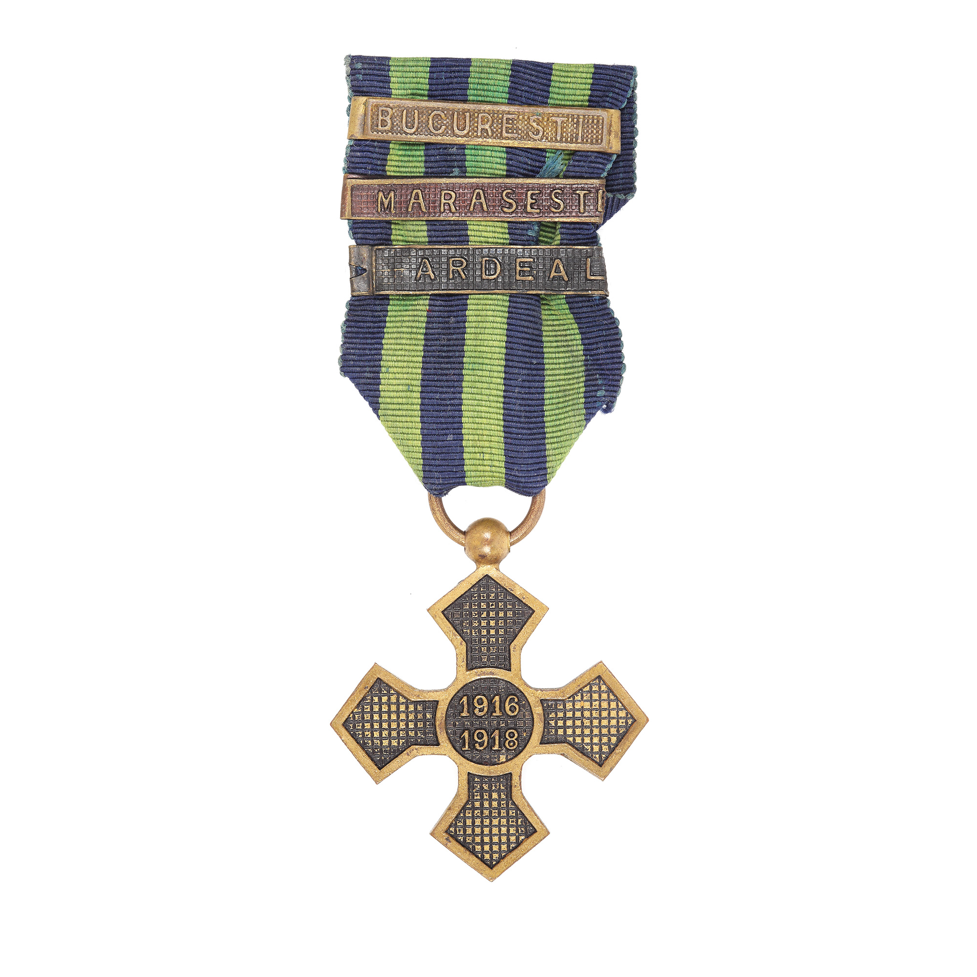 209. Crucea comemorativă a Războiului pentru reîntregirea neamului, cu baretele: Bucureşti, Mărăşeşti şi Ardeal
