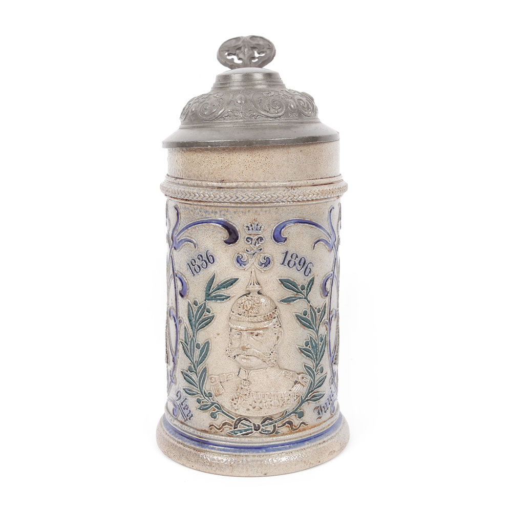 148. Halbă de bere frumos decorată cu motive militare și vegetale, cu efigia lui Otto von Bismarck, cancelar al Imperiului German [1896]