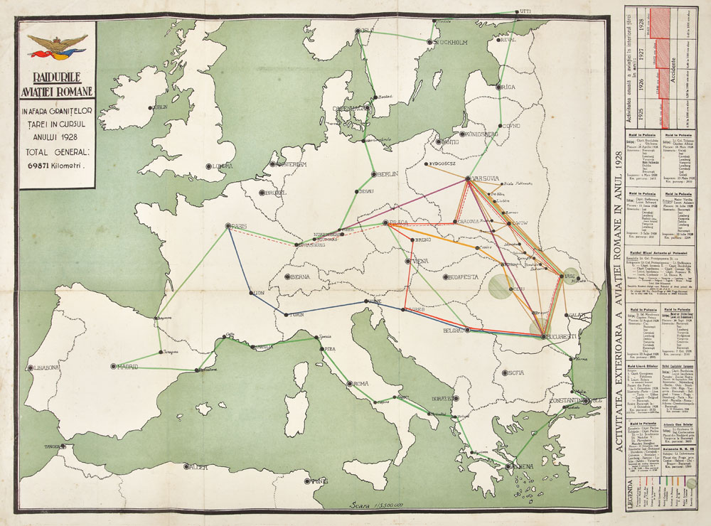 152. Harta "Raidurile Aviaţiei Române în afara graniţelor ţării în cursul anului 1928"