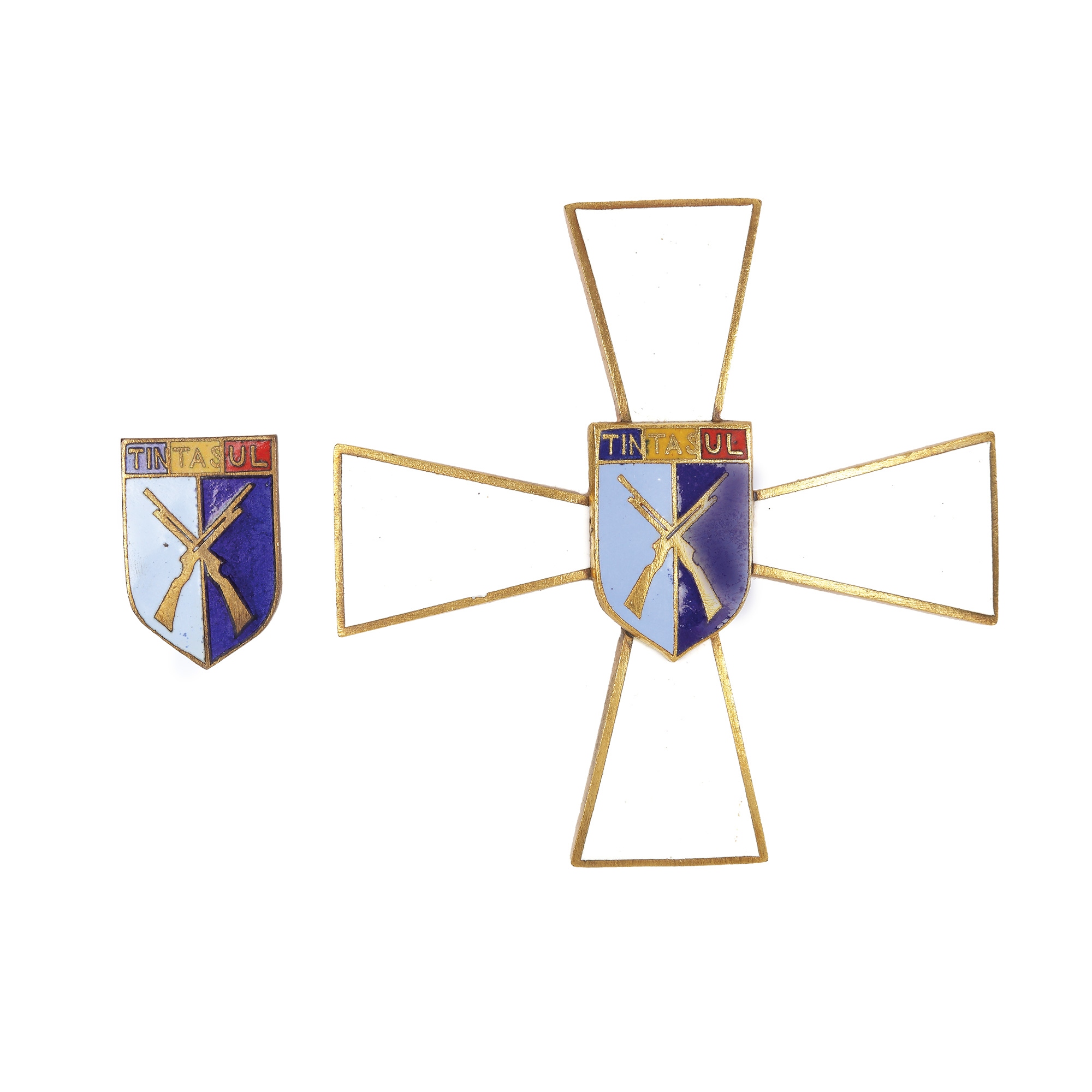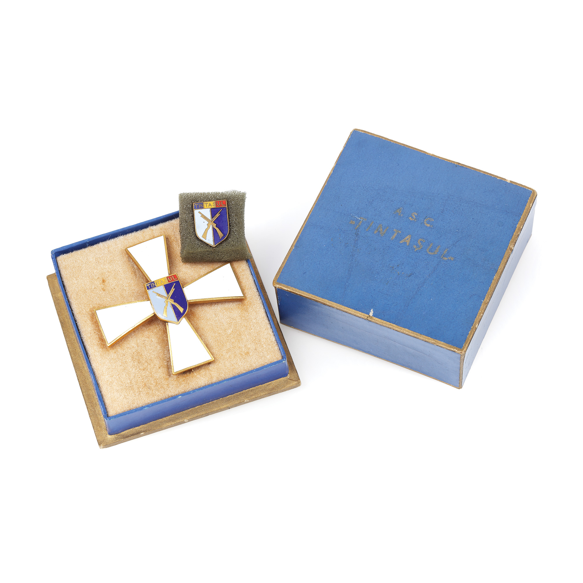 201. Insignă ”A.S.C. Țintașul”, însoțită de miniatura sa, cca. 1930, în cutia originală