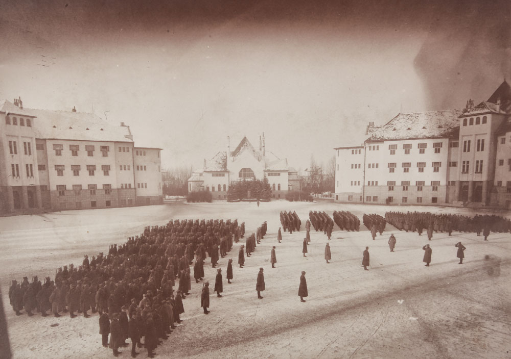 182. Lot format din 10 fotografii ilustrând Şcoala de ofiţeri de la Oradea, cca. 1920