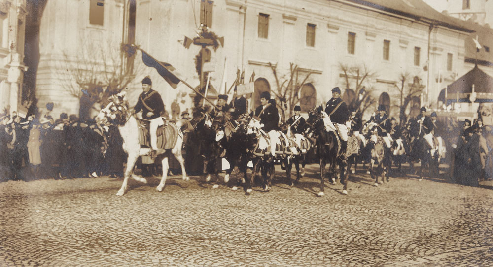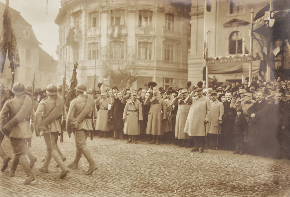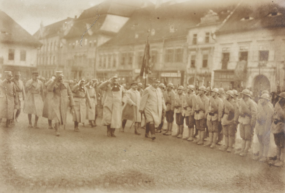 172. Lot format din șaşe fotografii de colecţie, reprezentând vizita generalului Henri Mathias Berthelot în Sibiu, 2 ianuarie 1919