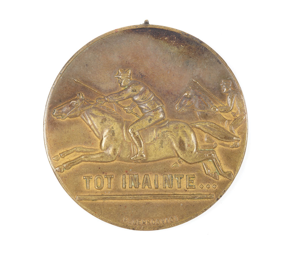 218. Medalie ”Jubileul școlii superioare de cavalerie”, gravor M. Gerscovici, 1923