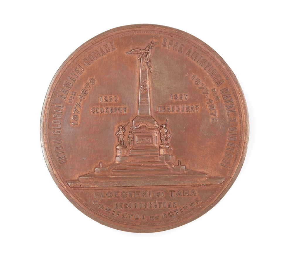 Piesa comemorează ridicarea monumentului din Ploiești dedicat armatei române și batalionului 2 vânători. Pe avers, chipul regelui flanact de anii de război și ai ridicării monumentului (1877-1878 și 1881-1897). În exergă, inscripția „Domnul României și marele căpitan, Carol I, regele României independente. Pe revers, monumentul din Ploiești dedicat armatei române din războiul de independență, înconjurat de inscripția „Întru gloria armatei române, spre amintirea Batalionului 2 vânători, 1890 conceput – 1897 inaugurat”. Sub imaginea monumentului, inscripția „Ploieștenii și Țara recunoscătoare. Comitetul de acțiune”.