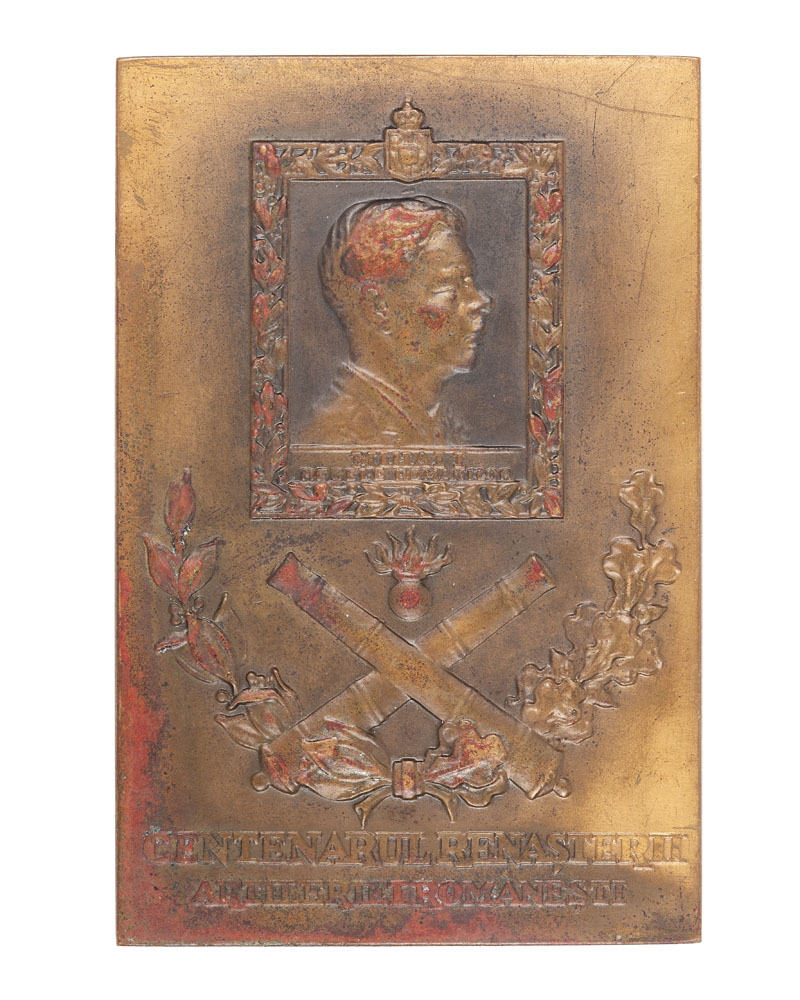 220. Plachetă ”Centenarul renașterii artileriei române”, în cutia originală, 1943