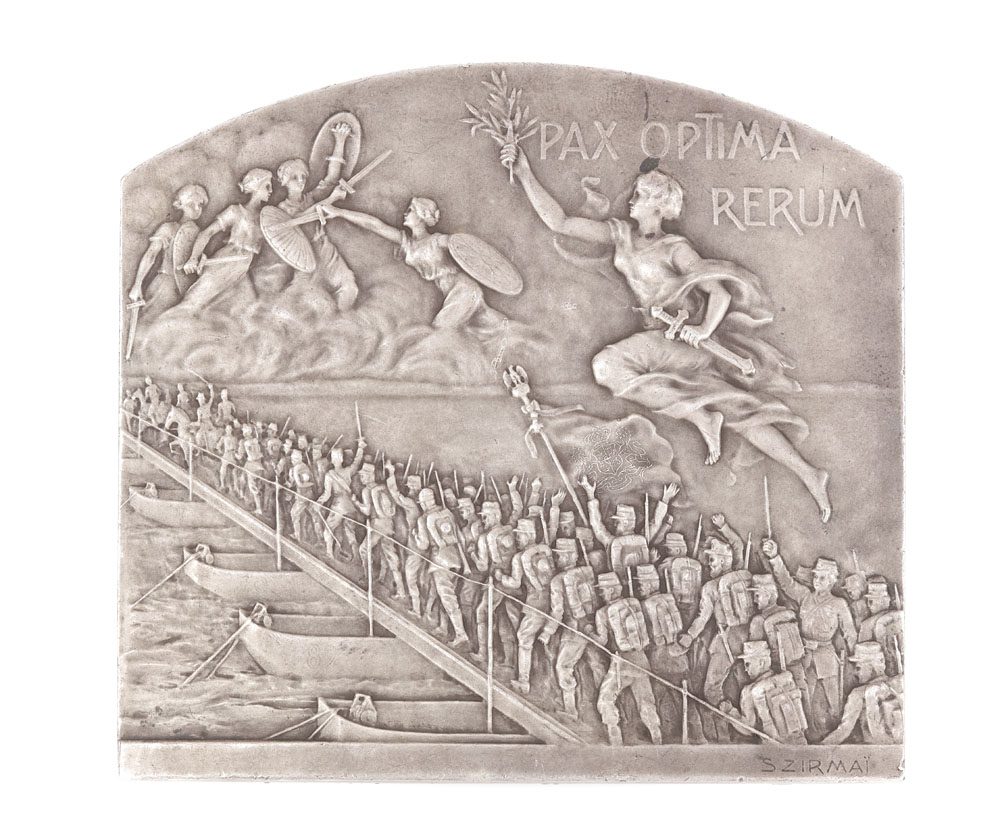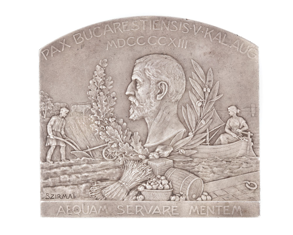 228. Plachetă din argint "Pacea de la Bucureşti", gravor Tony Szirmai, 1913, piesă extrem de rară, de colecţie