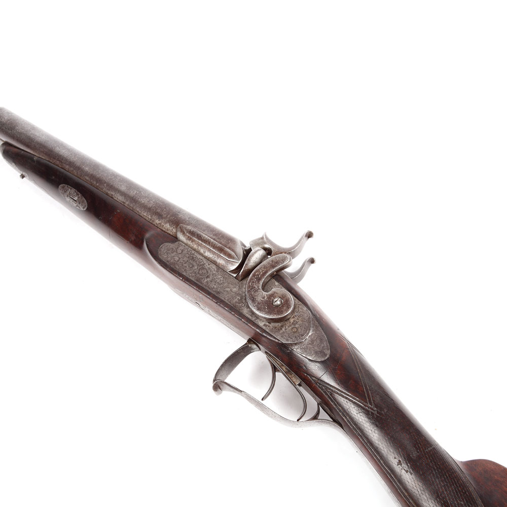 Pușcă de vânătoare, cu percuție, cu 2 țevi lise, a doua jumătate a sec. XIX.