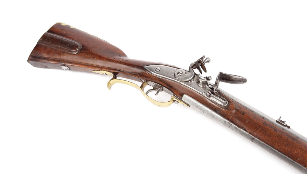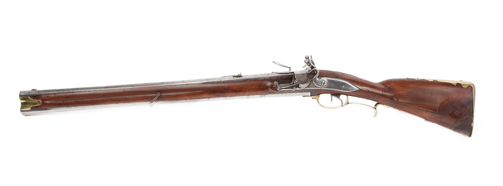 Pușcă de vânătoare, cu cremene, cu 2 țevi suprapuse, una ghinutuită și una lisă, inscripționată pe partea superioară a țevilor "Georg Schwarz in Prespurg" și numerotată. Aceste numere arată că arma făcea parte dintr-un set de vânătoare. Fiind arme foc cu foc iar încărcarea lor necesitând destul de mult timp, prețios în timpul vânătorii, proprietarii foloseau mai multe arme gata încărcate și le trăgeau pe rând.
