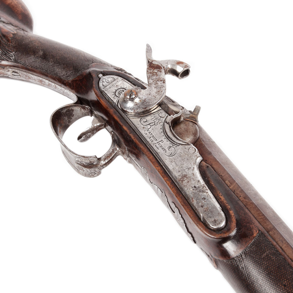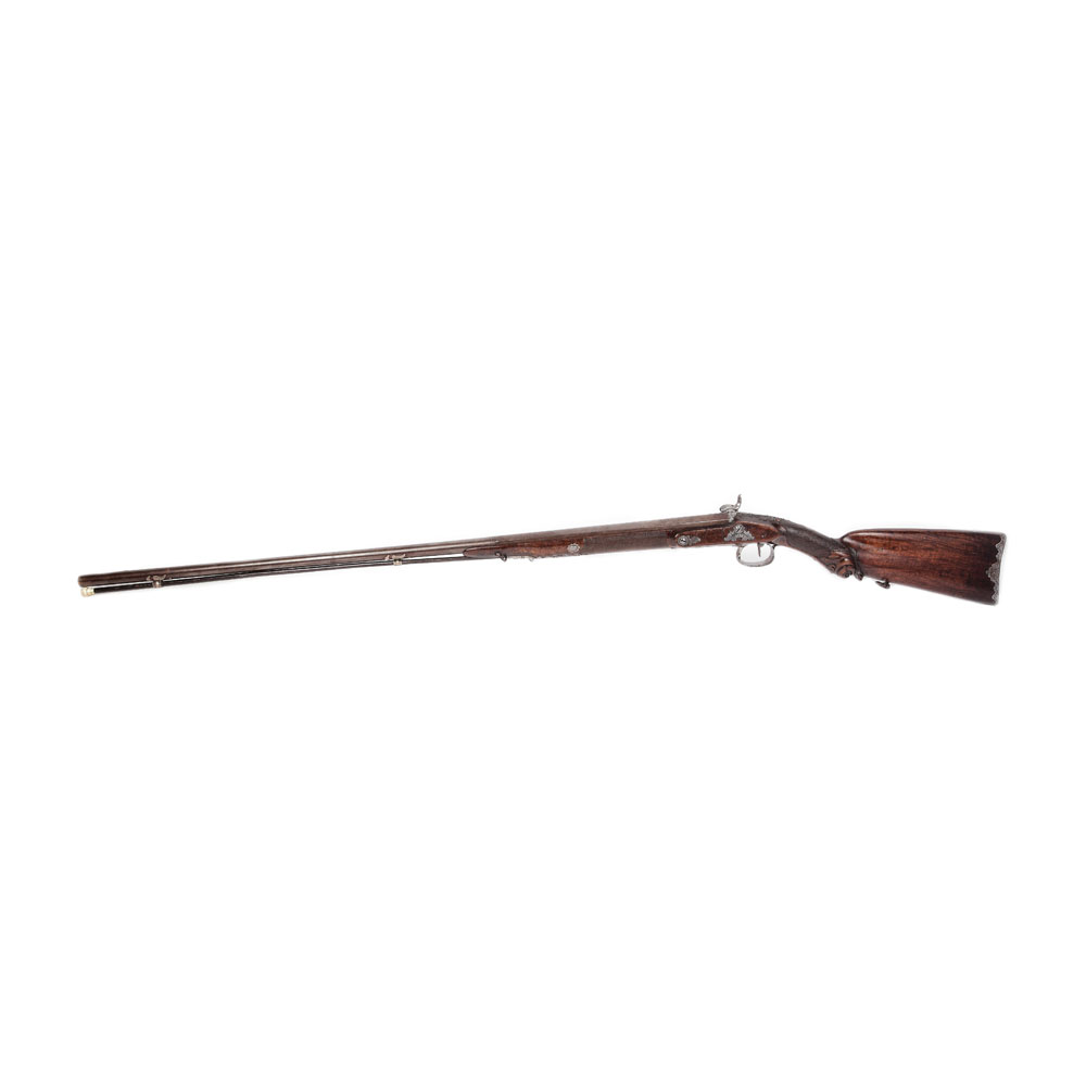 Pușcă de vânătoare Berthon Perrin a Aix, cu percuție, cu o țeavă lisă și bătătorul original, sfârșitul sec. XIX.