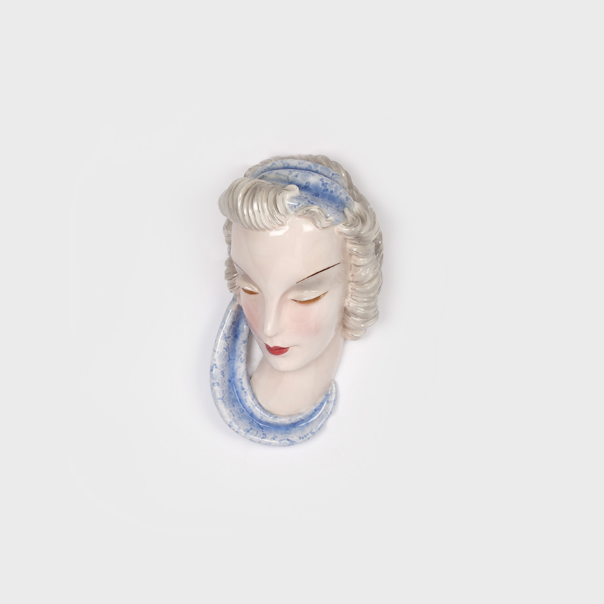 Mască decorativă în stil Art Deco, figură feminină, reprezentând modelul 8041 al cunoscutului și apreciatului atelier vienez.
