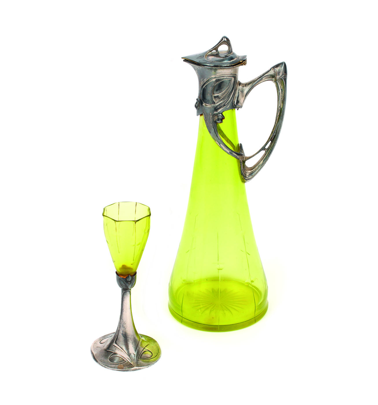 148. Set format din carafă cu pahar, în stil Art Nouveau, pentru băuturi aperitiv, cca. 1900