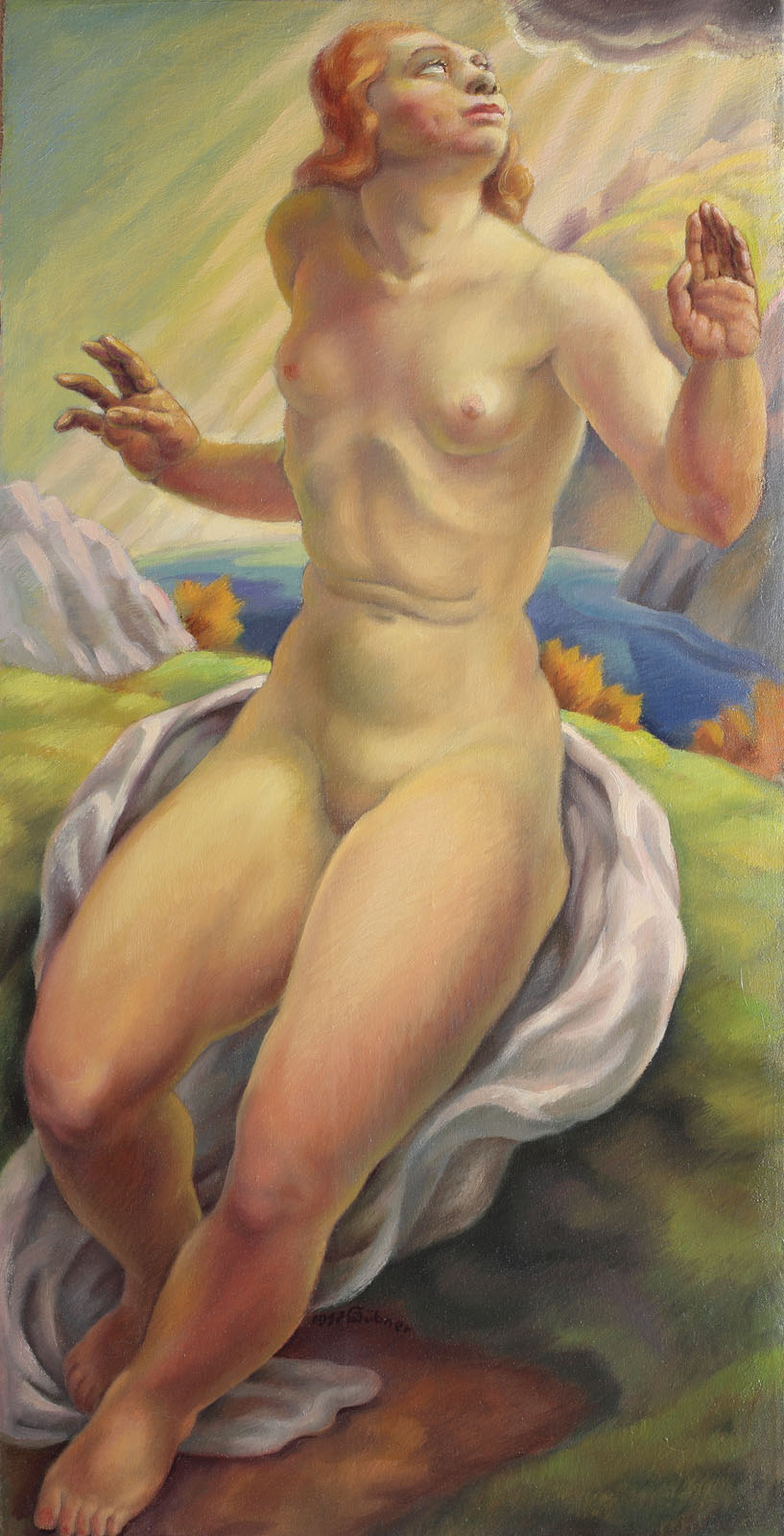 semnat şi datat central jos, cu brun, Hubner, 1937