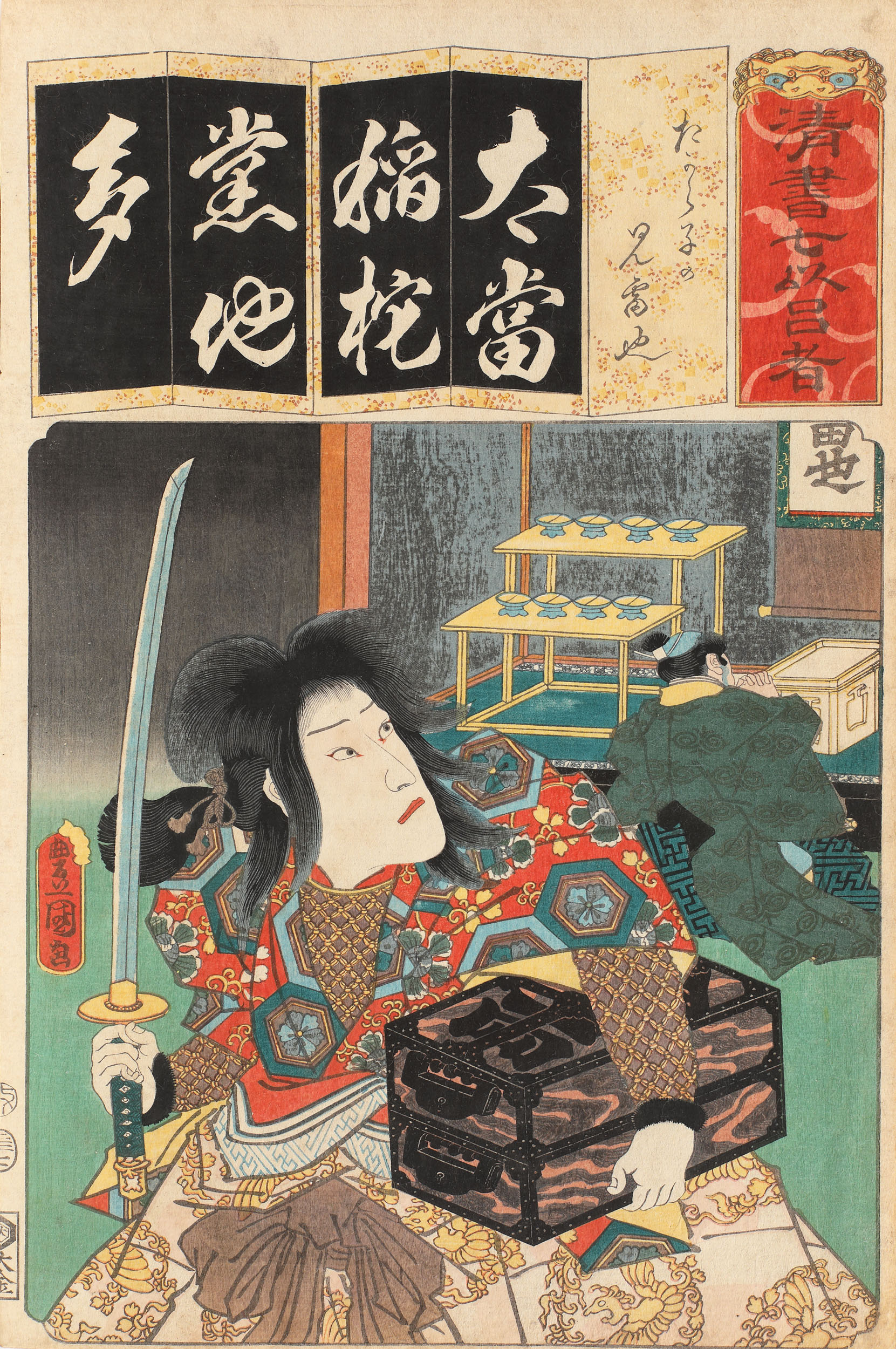semnat lateral stânga, ”Toyokuni ga”; menţionat editorul, ”Daikokuya Kinnosuke”;