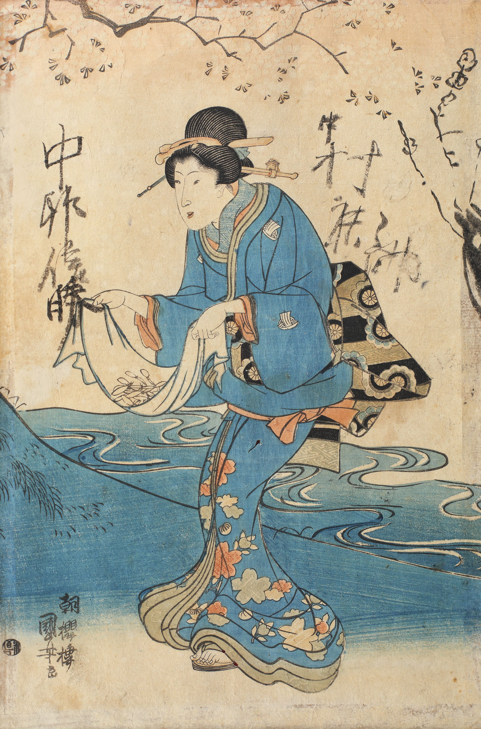semnat stânga jos, cu sigiliul artistului; semnat stânga jos, ”Ichiyûsai Kuniyoshi ga”;