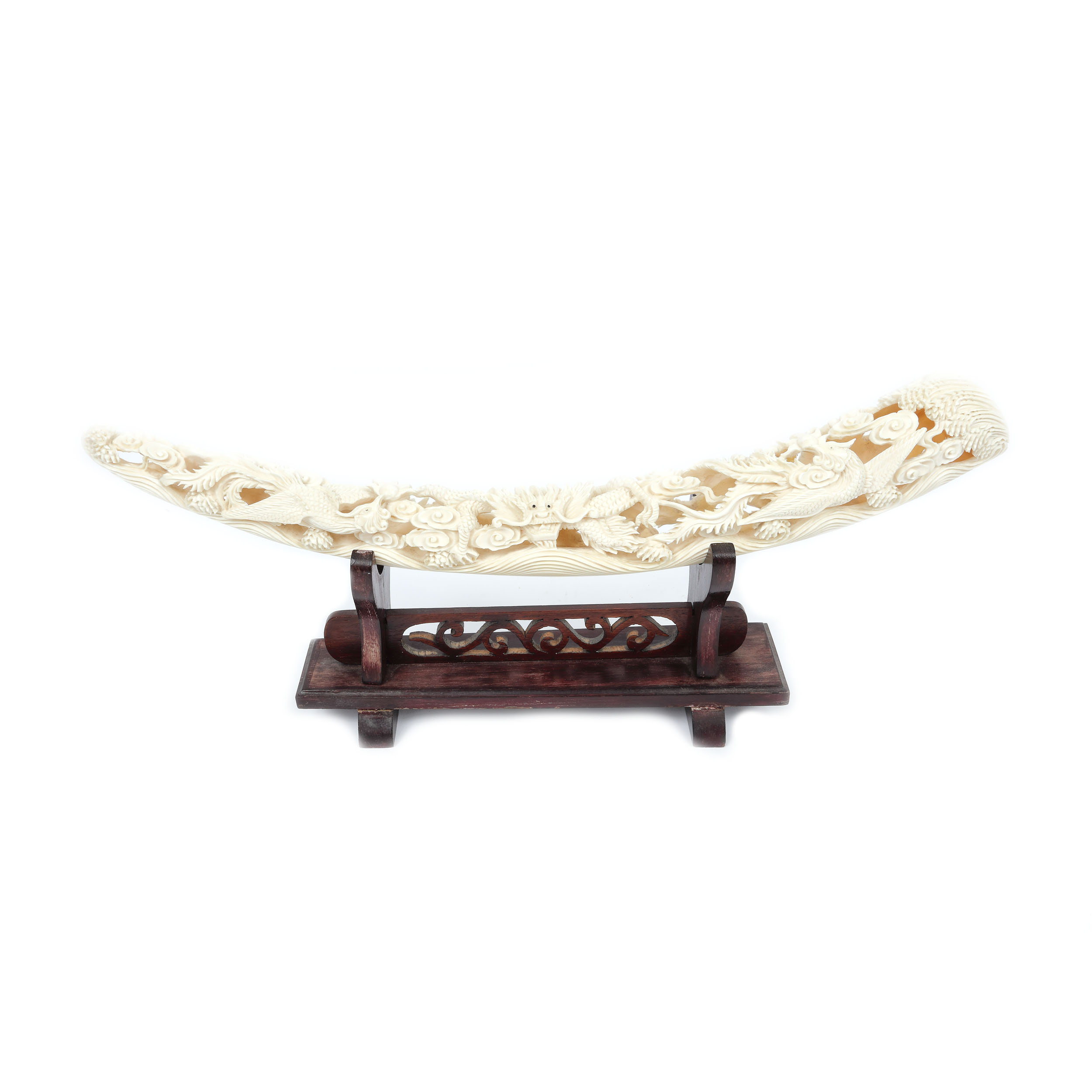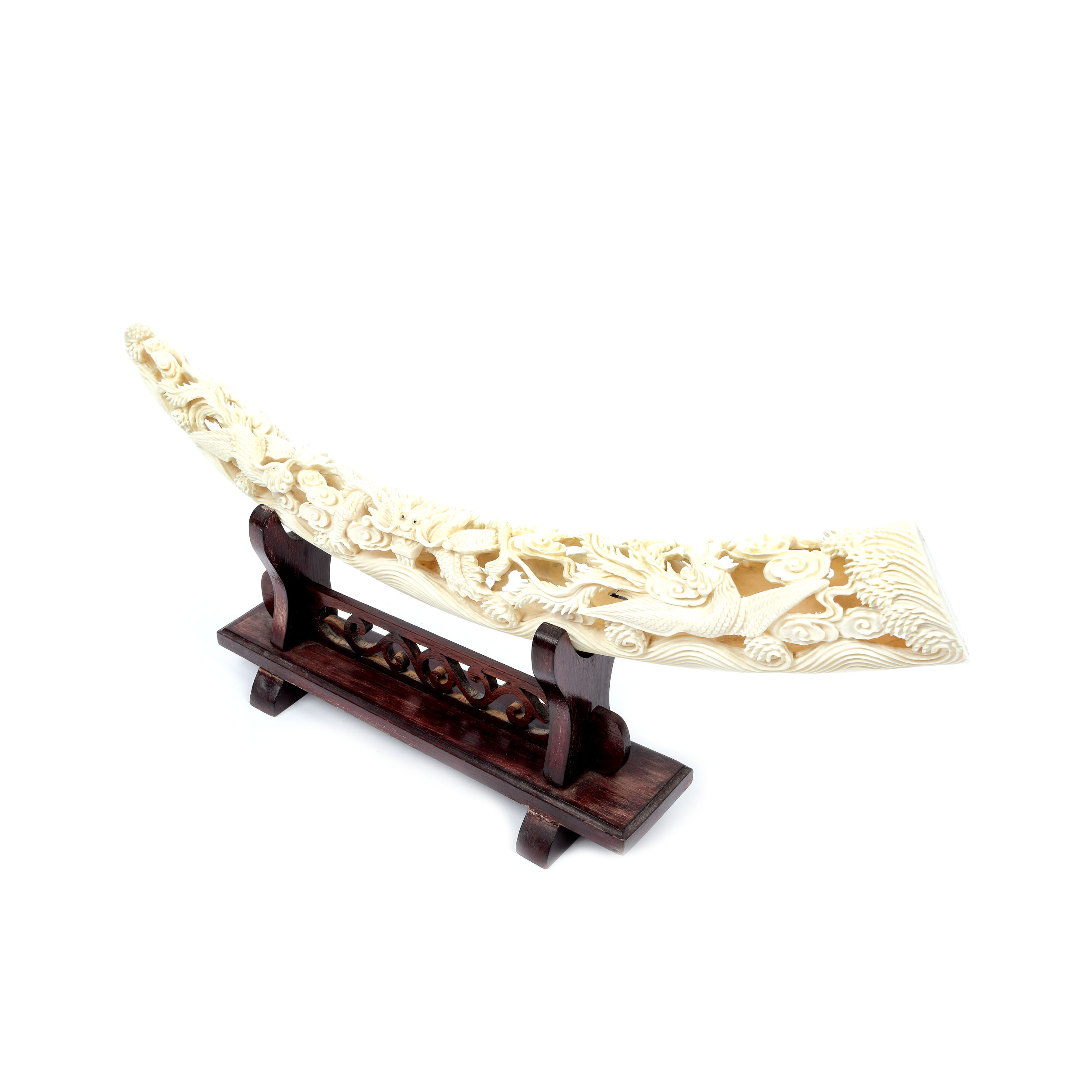 97. Corn din fildeș sculptat cu motivul dragonului, sfârșitul perioadei Qing, China, începutul sec. XX