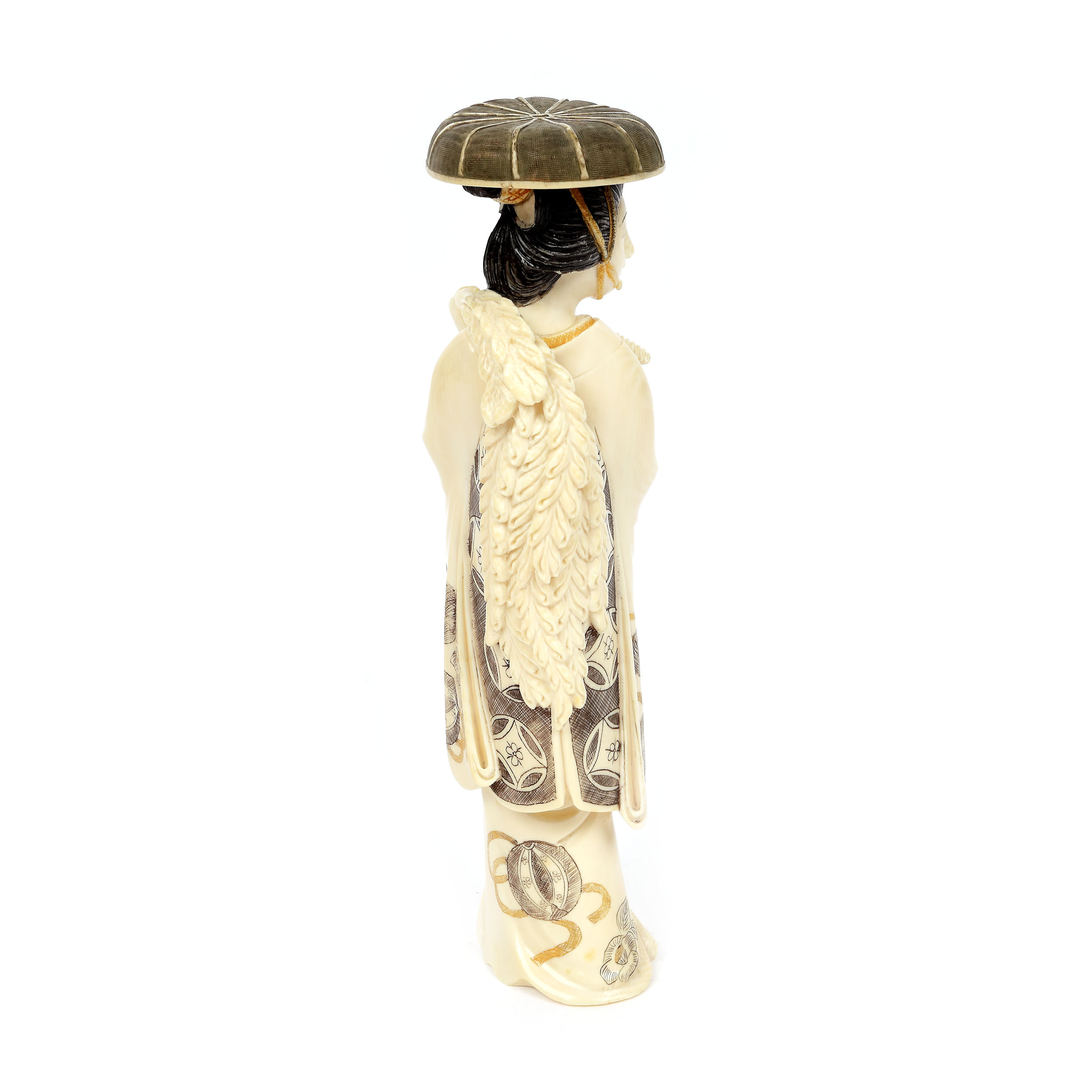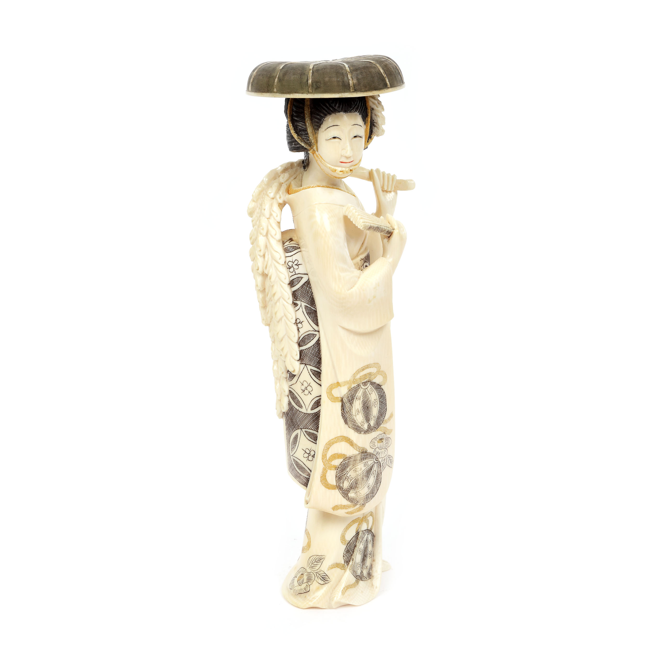 90. Okimono din fildeş înfățișând o frumoasă japoneză, sfârșitul perioadei Meiji, Japonia, cca. 1900