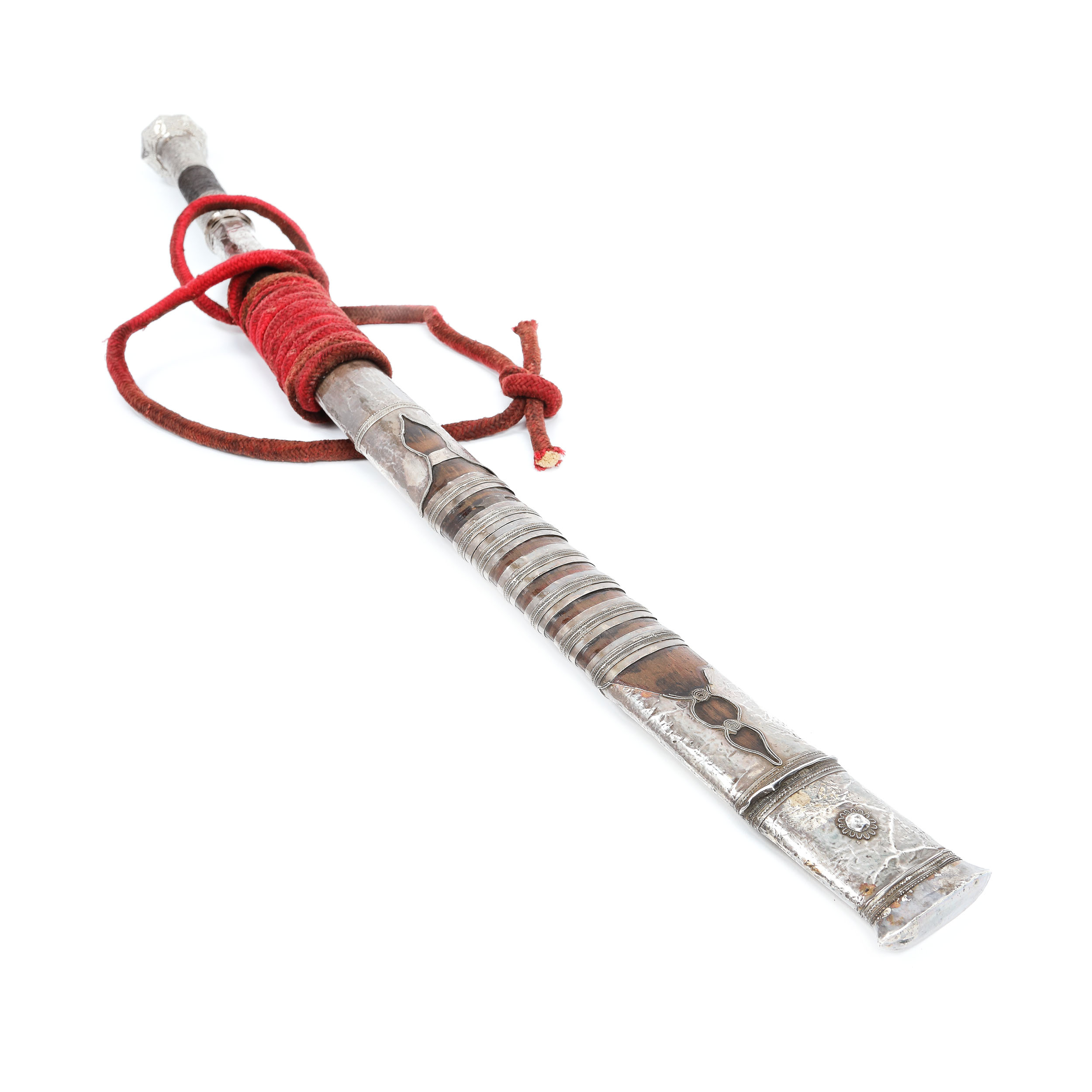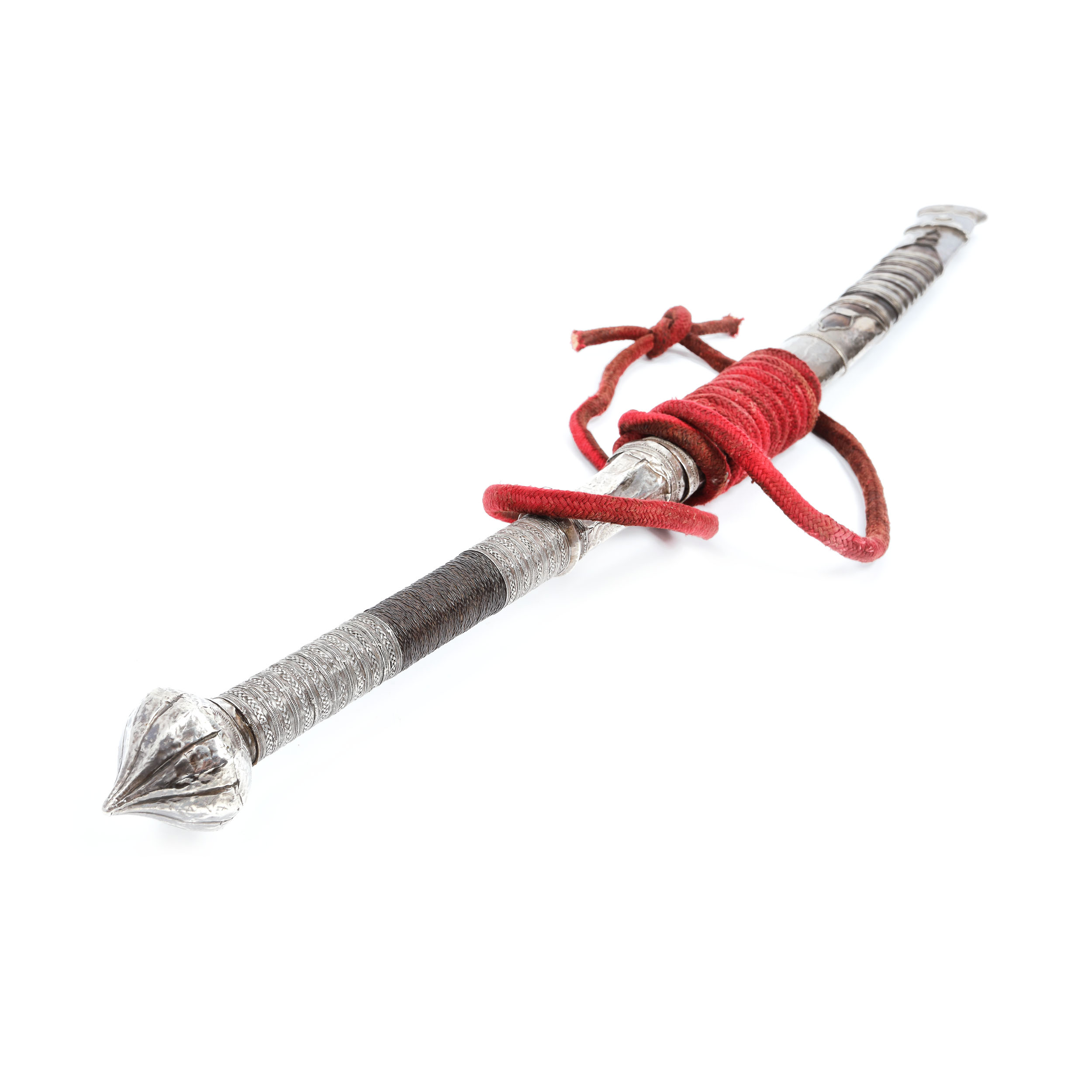 71. Sabie de tip Dha, cu montura din argint, decorată cu cele șapte inele specifice armelor de căpetenie, Burma, sec. XVIII