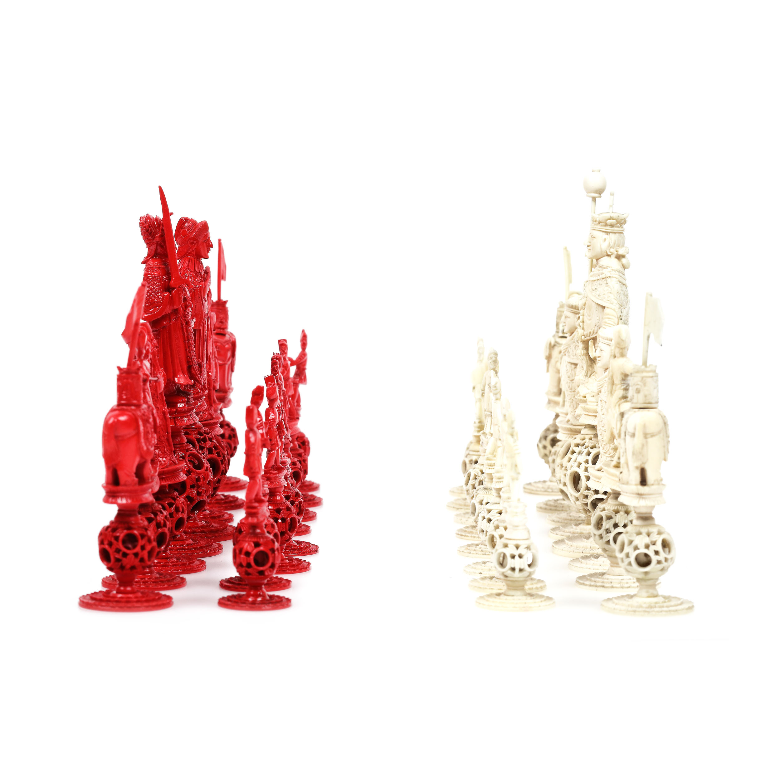82. Set de piese de șah din fildeș sculptat, perioada Qing, China, începutul sec. XIX