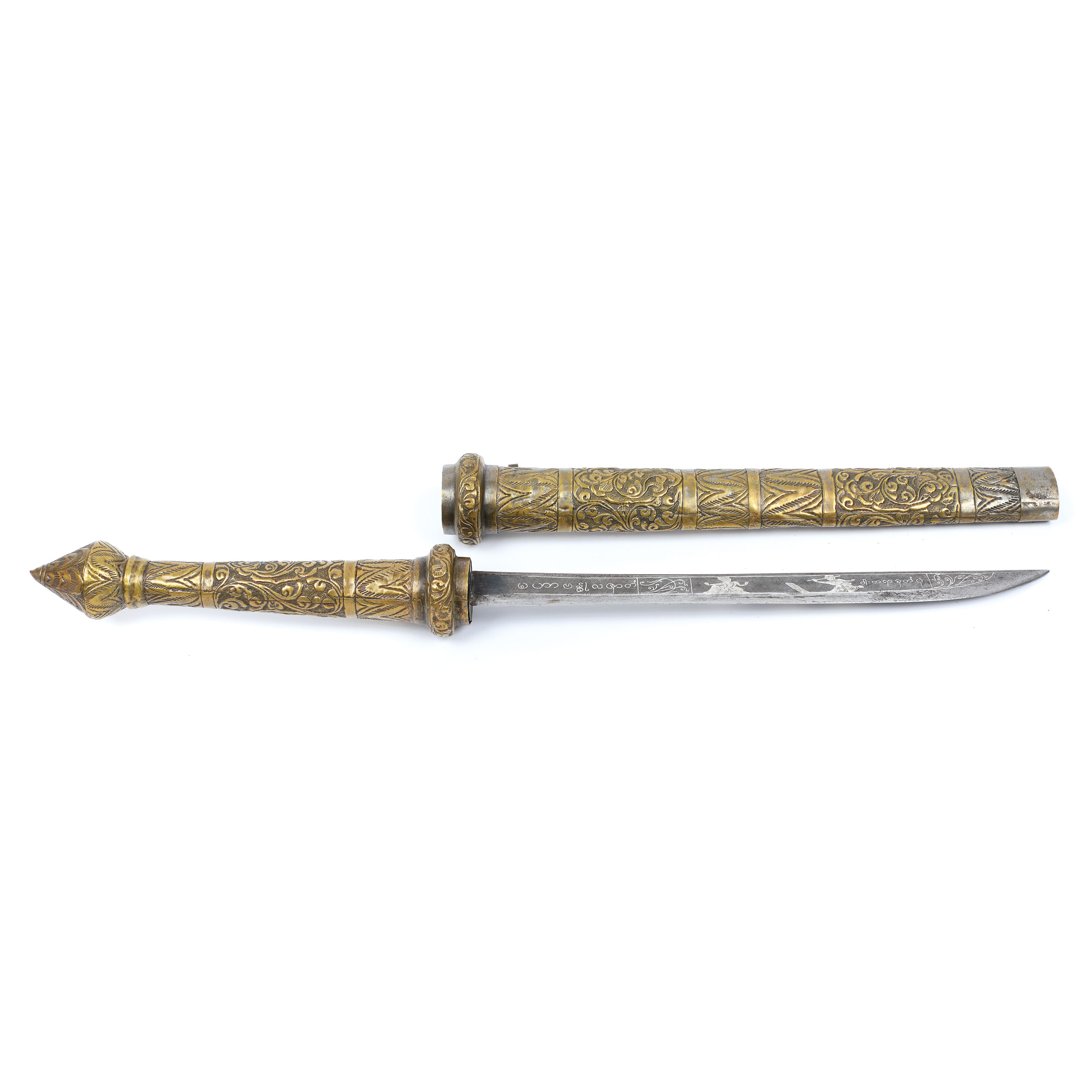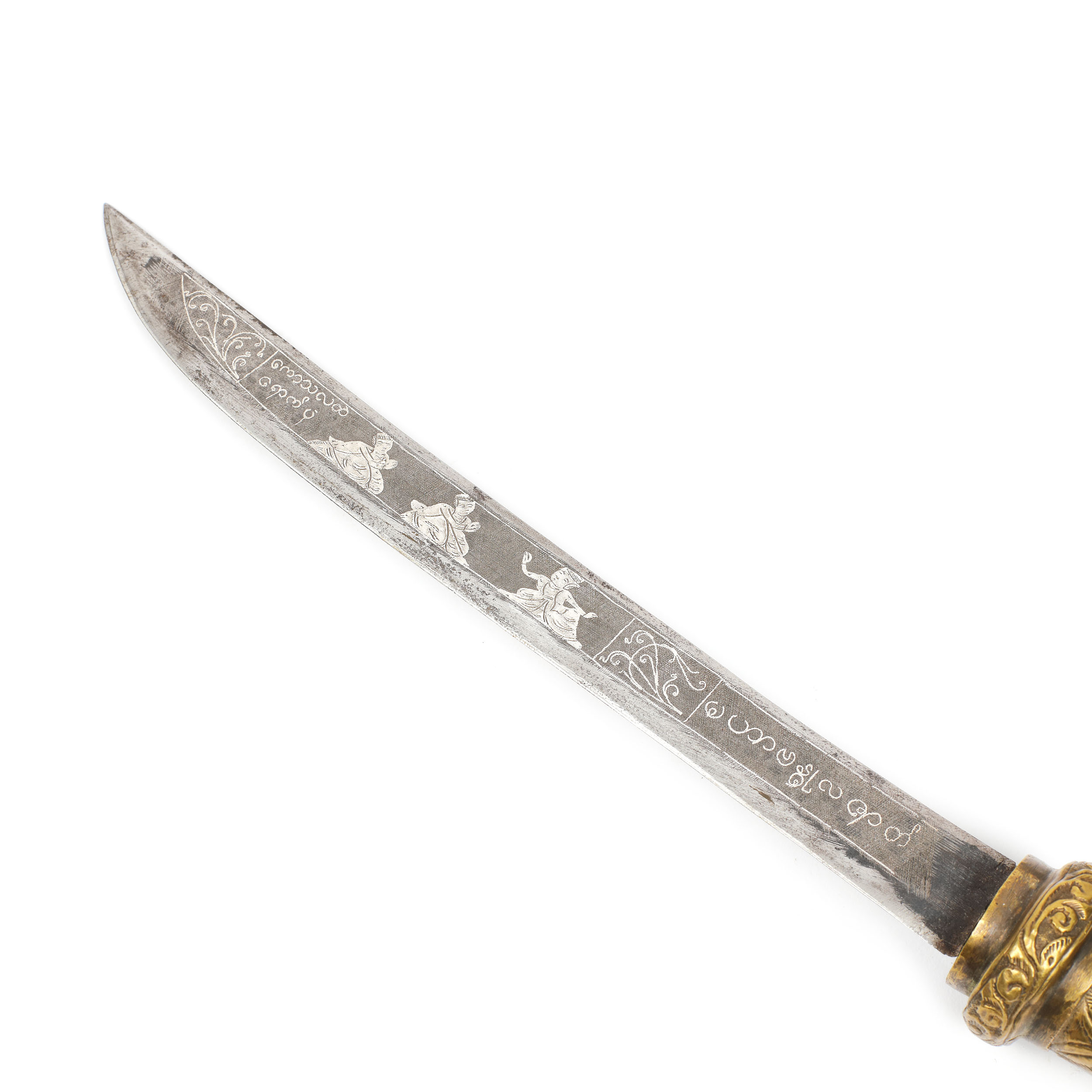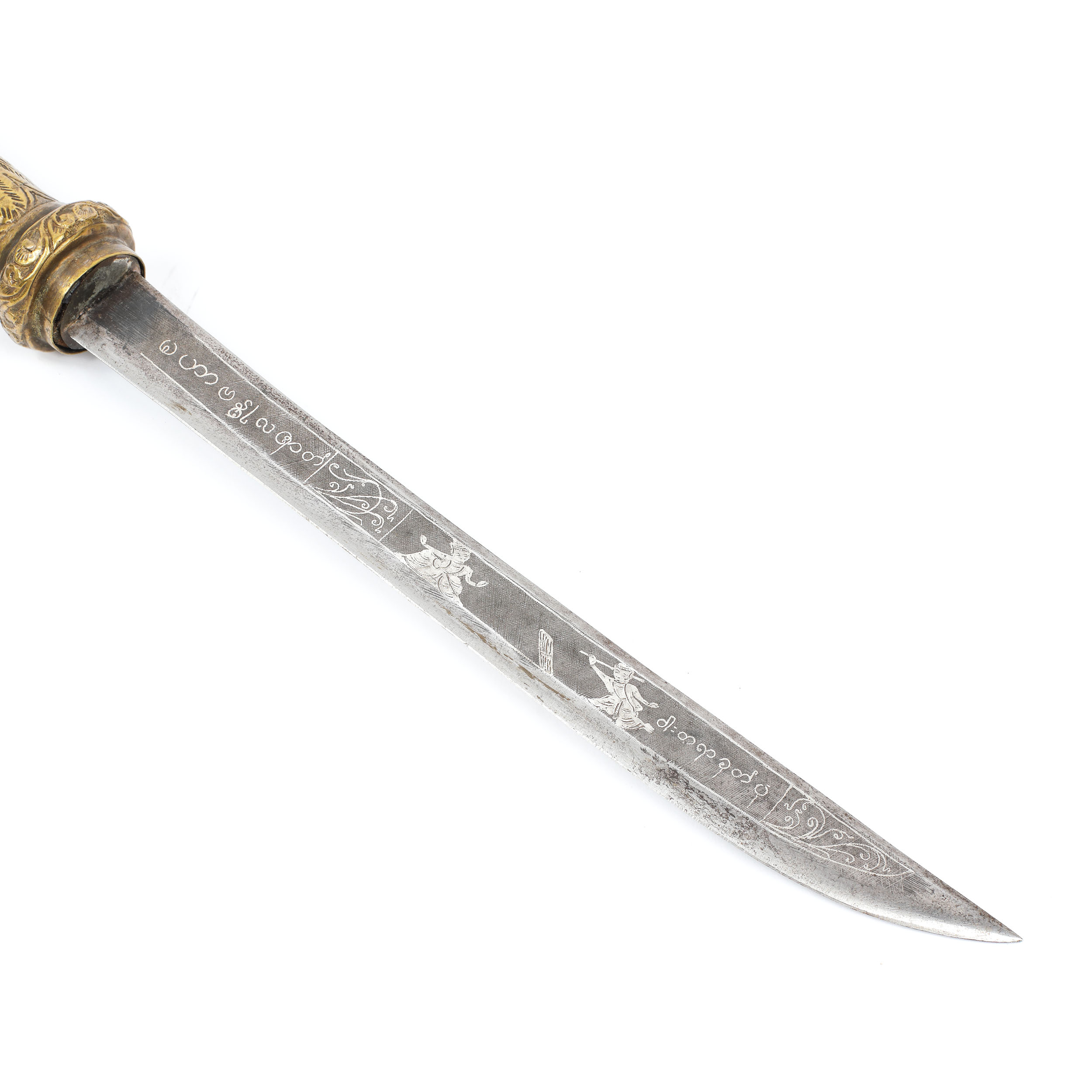 72. Thai din alamă cu intarsii din argint, decorat cu motive tradiționale, Thailanda, sfârșitul sec. XVIII