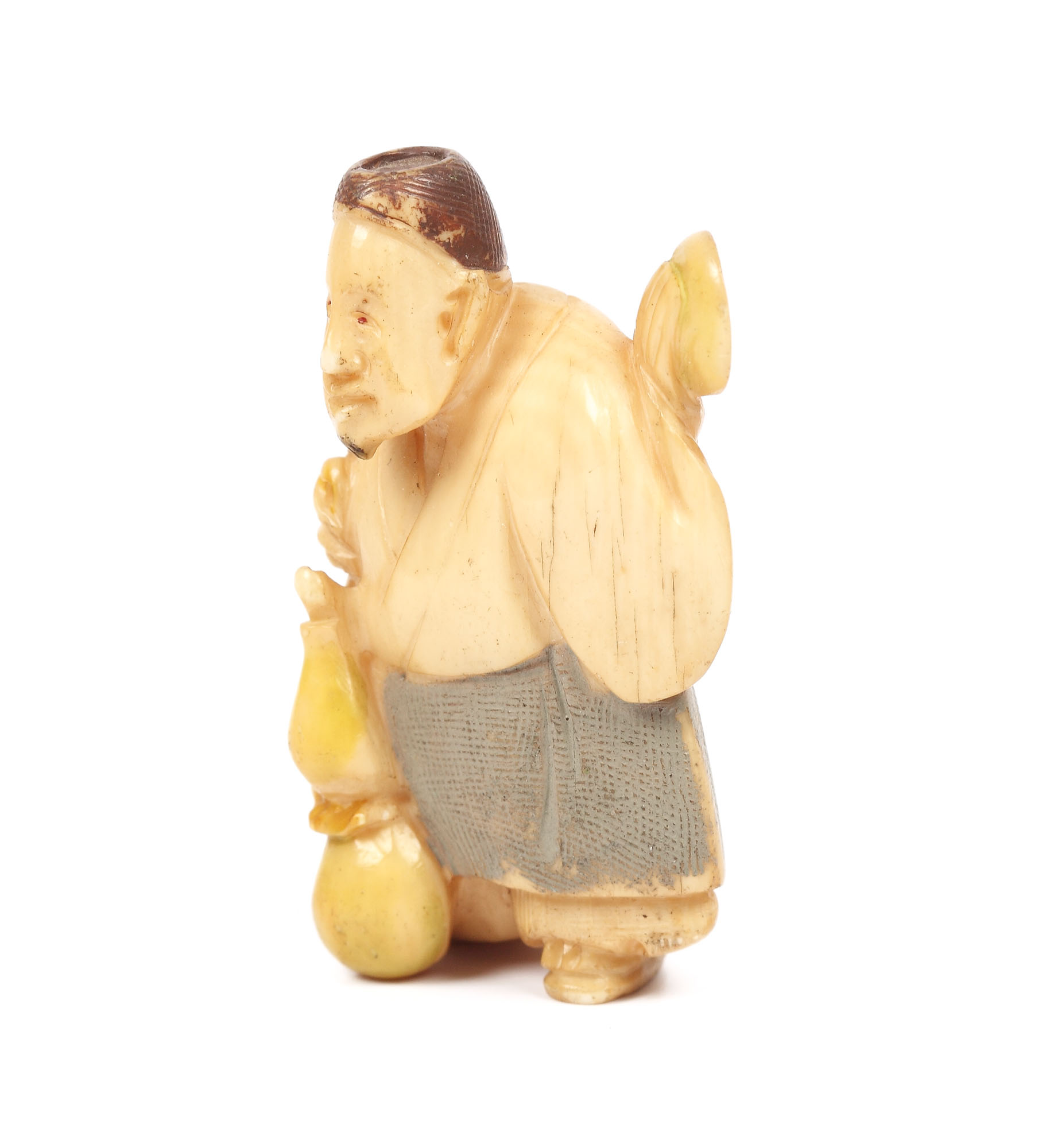 45. Netsuke din fildeş în culori, reprezentând un bucătar, semnat de sculptor japonez de perioadă Meiji