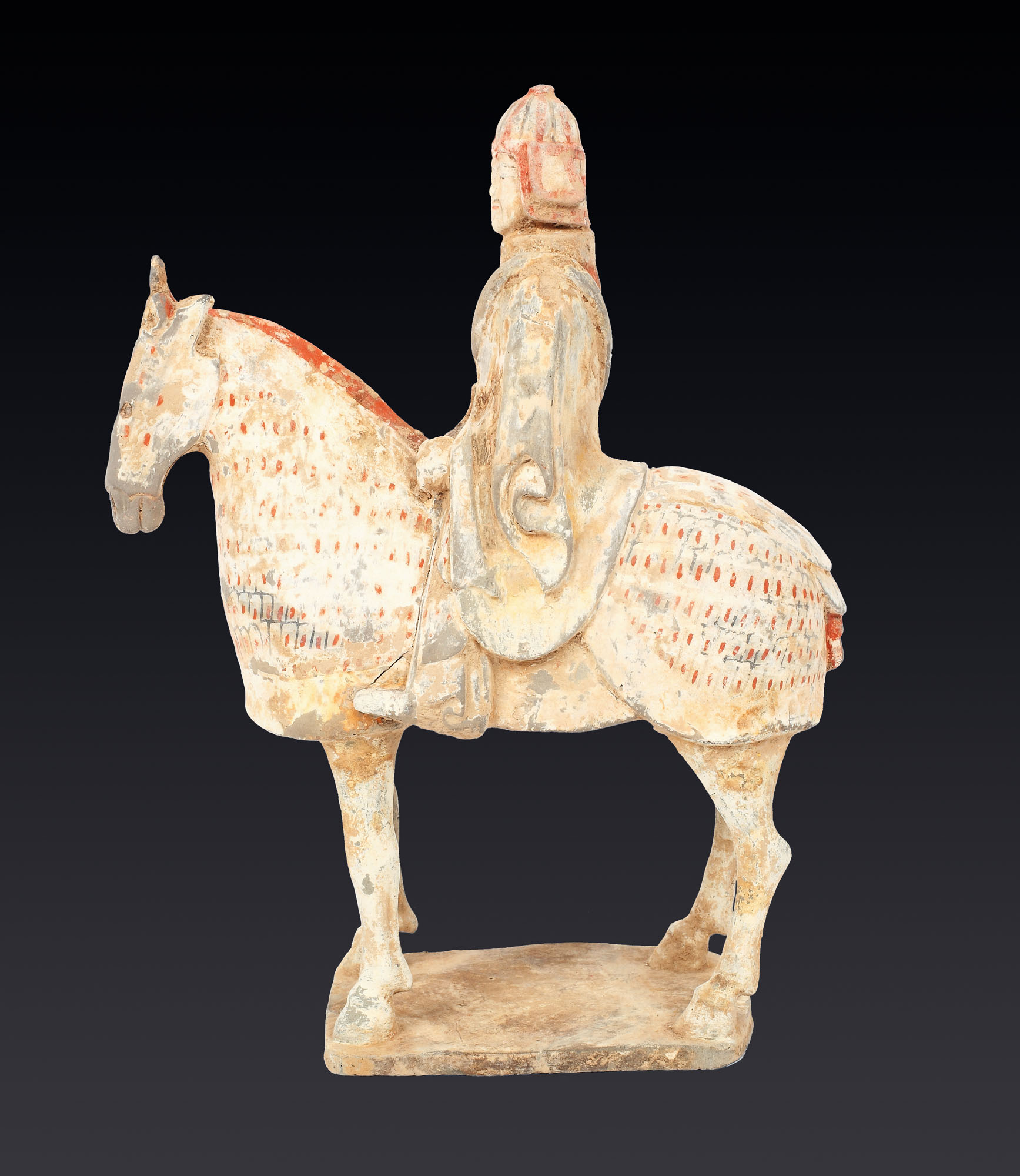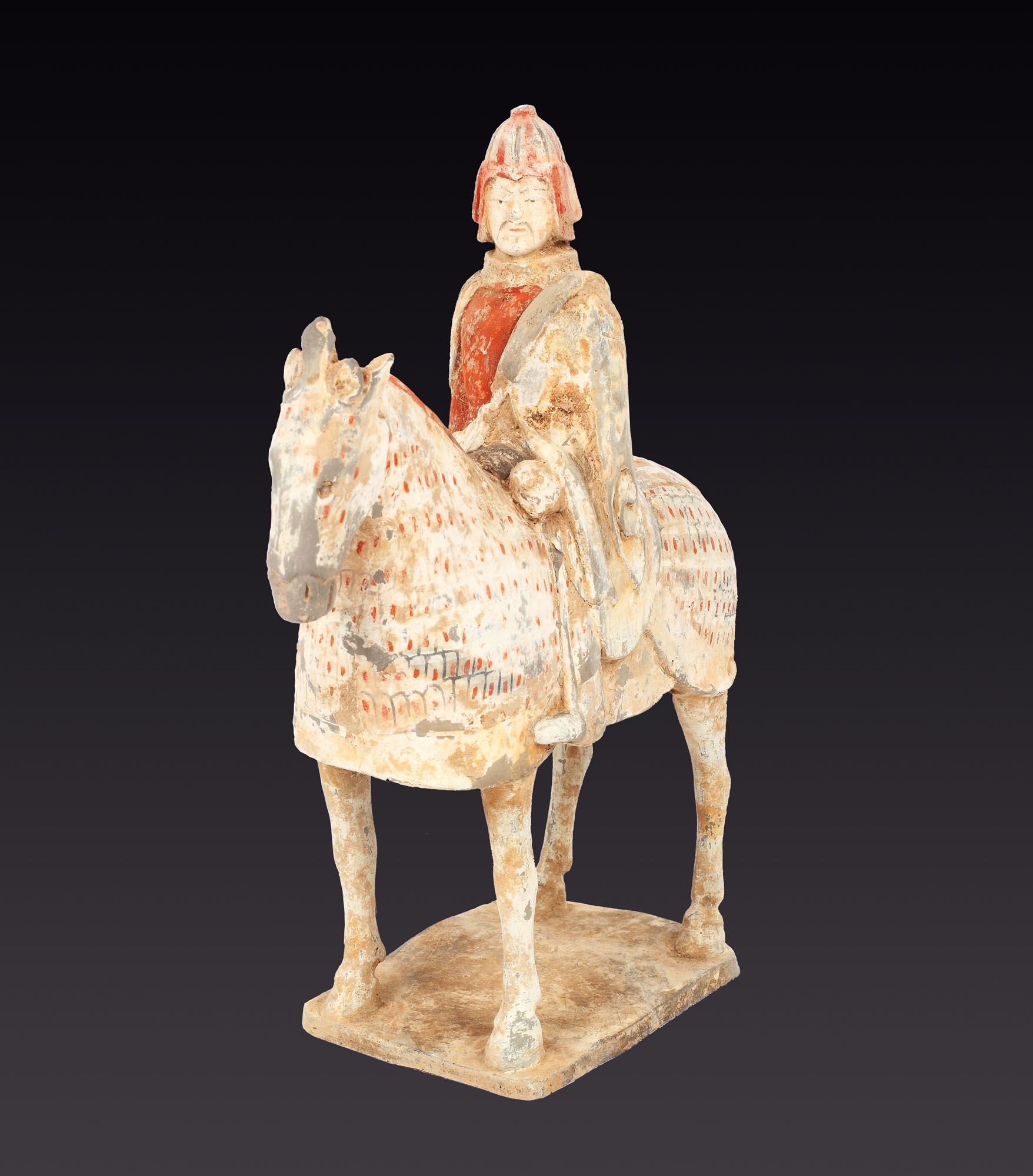 37. Statuetă din teracotă, reprezentând un soldat călare, China, dinastia Wei, sec. V-VI