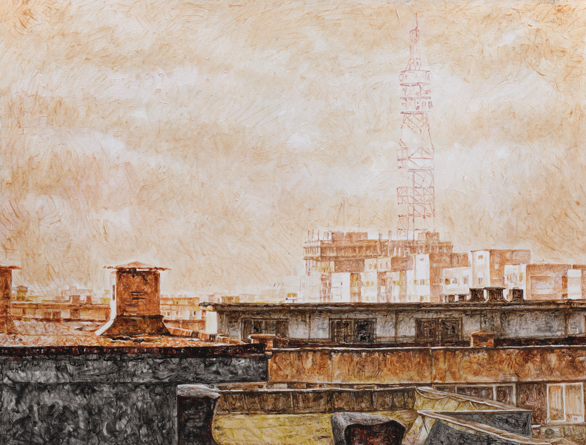 praf, pământ, cenuşă, pulbere de muştar în mediu acrilic şi acrilic pe pânză