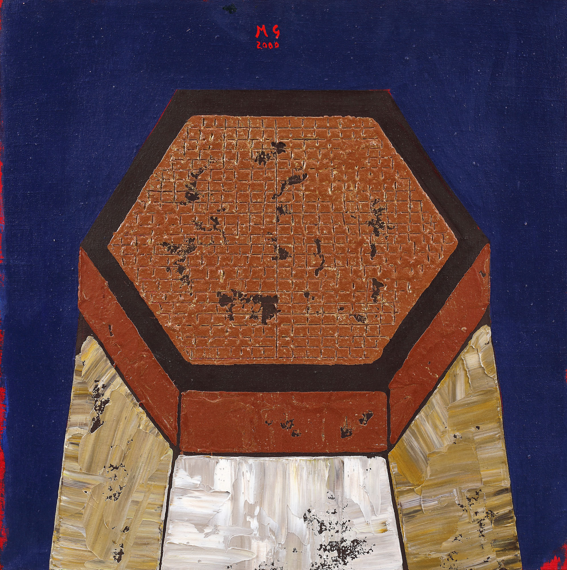 semnat și datat central sus, cu roșu, "MG, 2000"