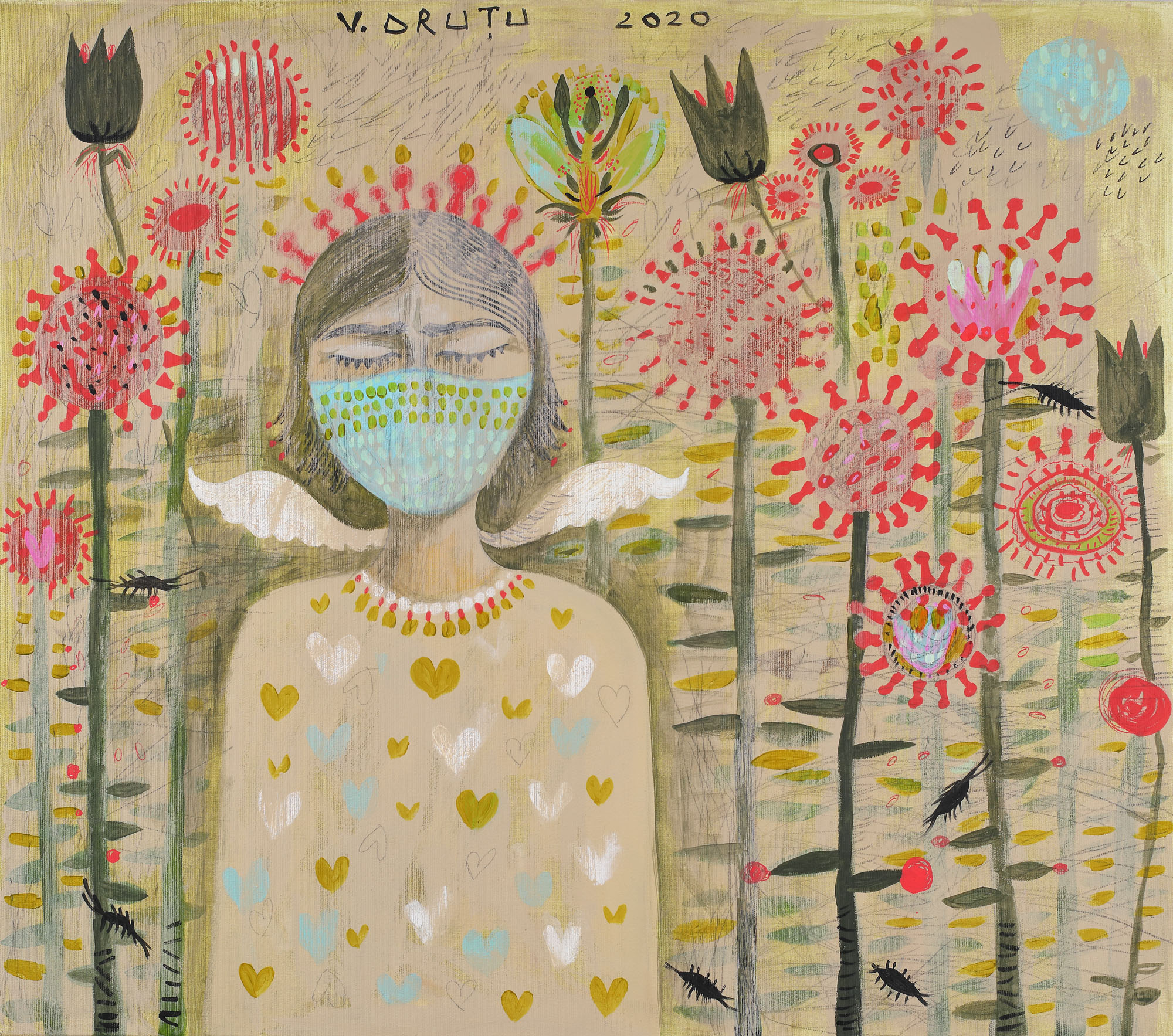 semnat și datat central sus, cu negru, "V. Drutu, 2020"