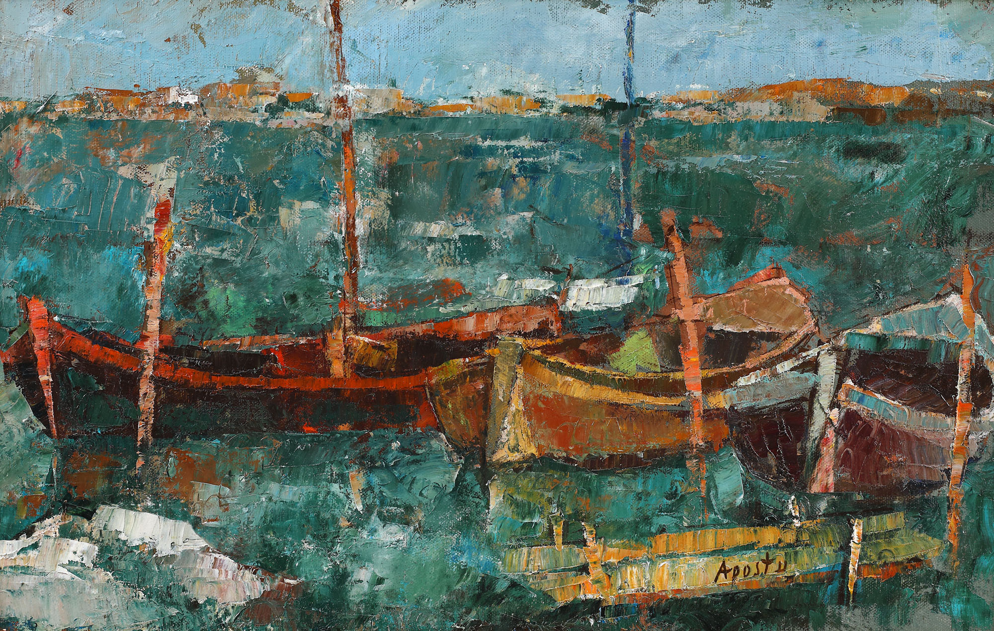 semnat dreapta jos, cu brun, "Apostu"