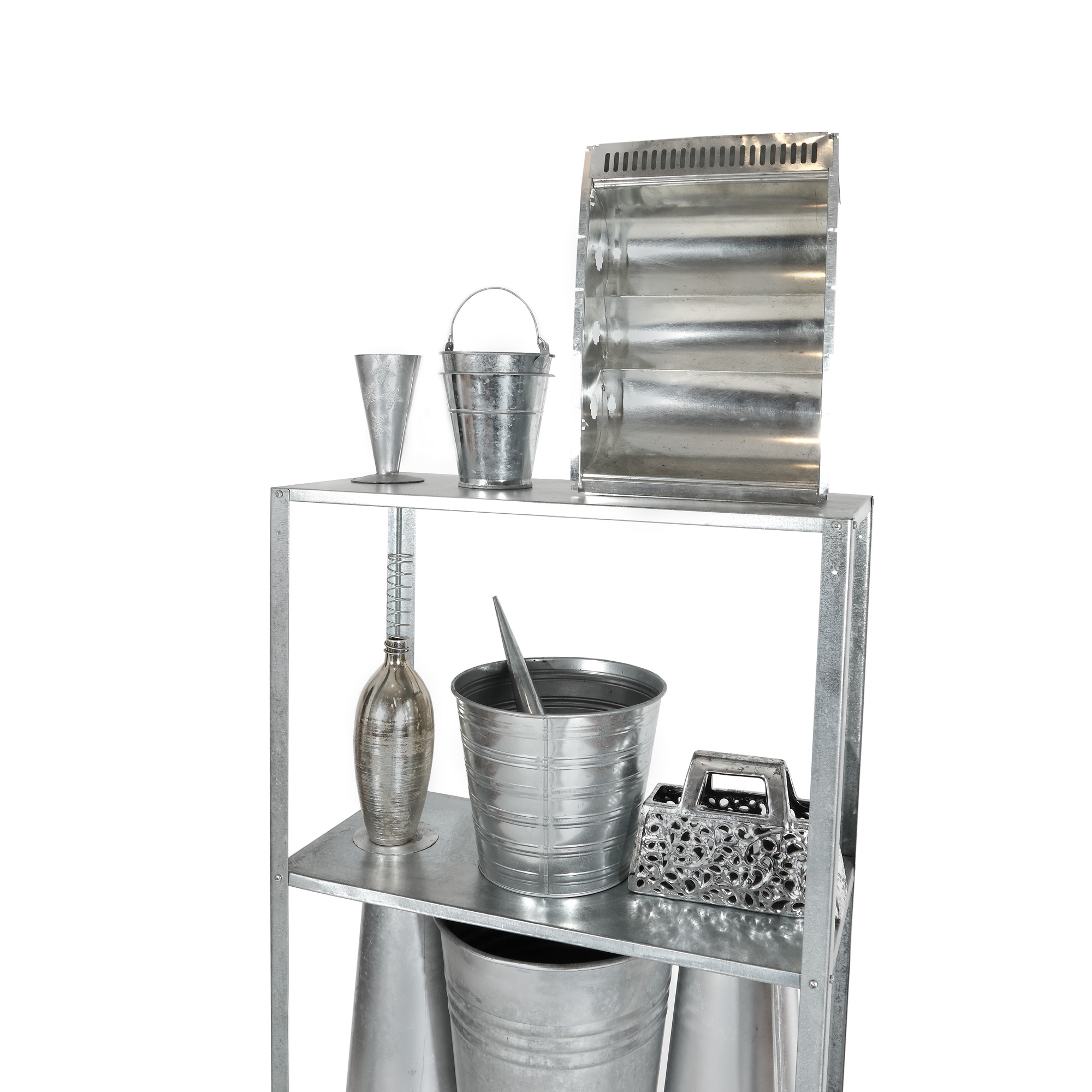 instalație (obiecte ready-made, ceramică glazurată, metal)