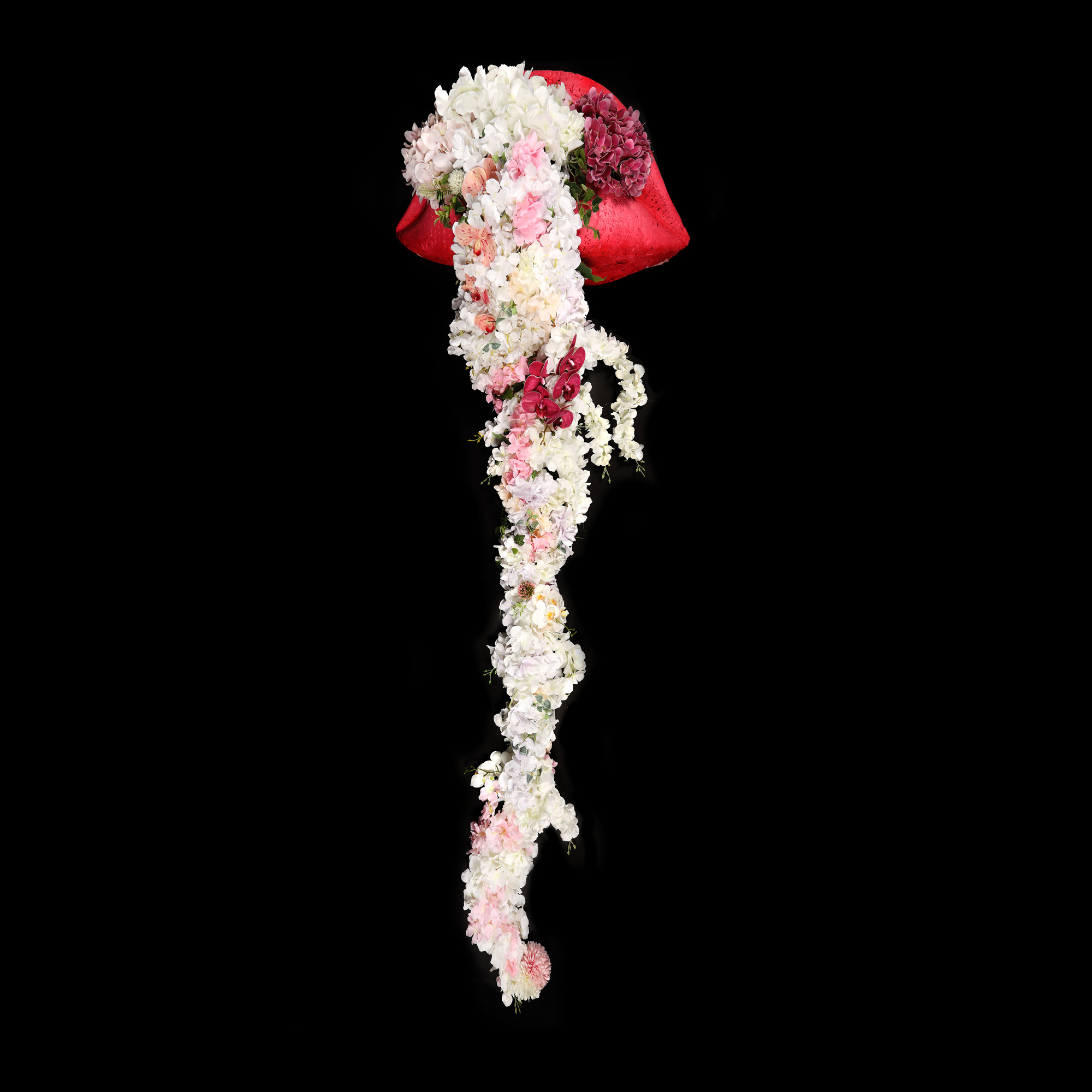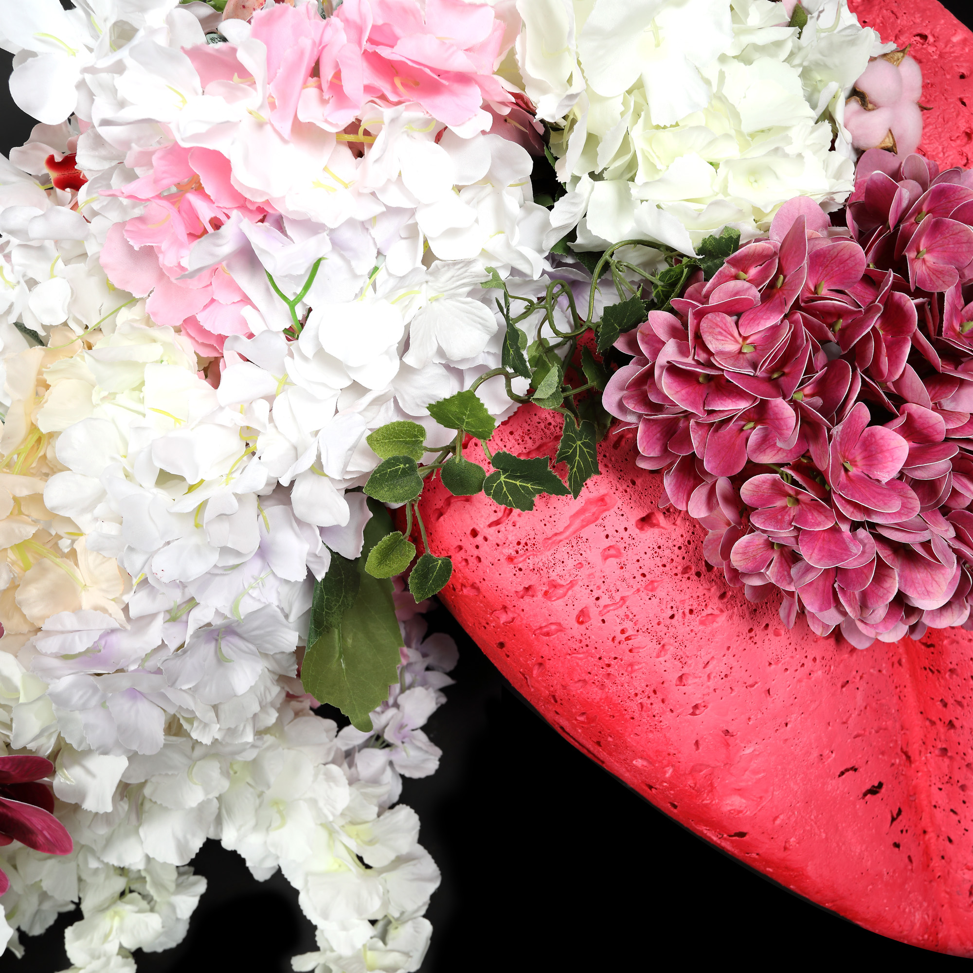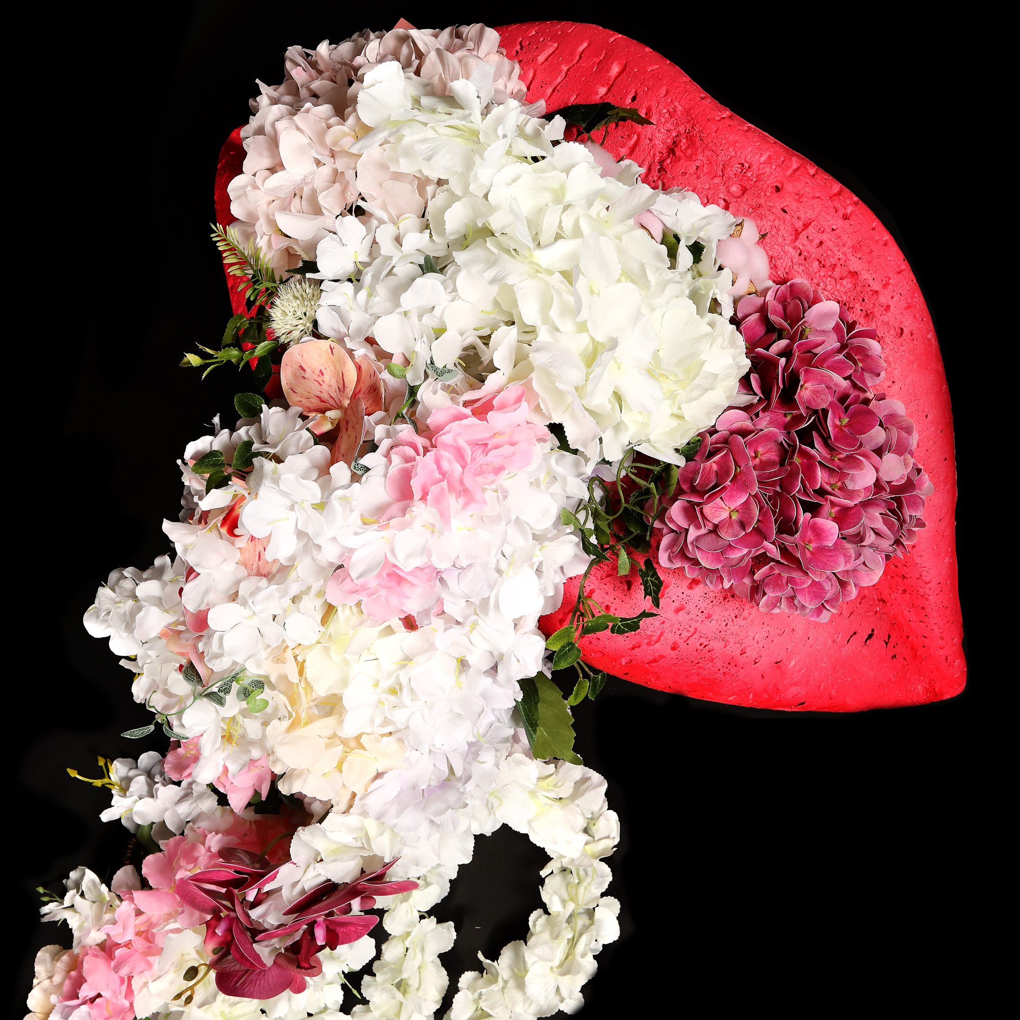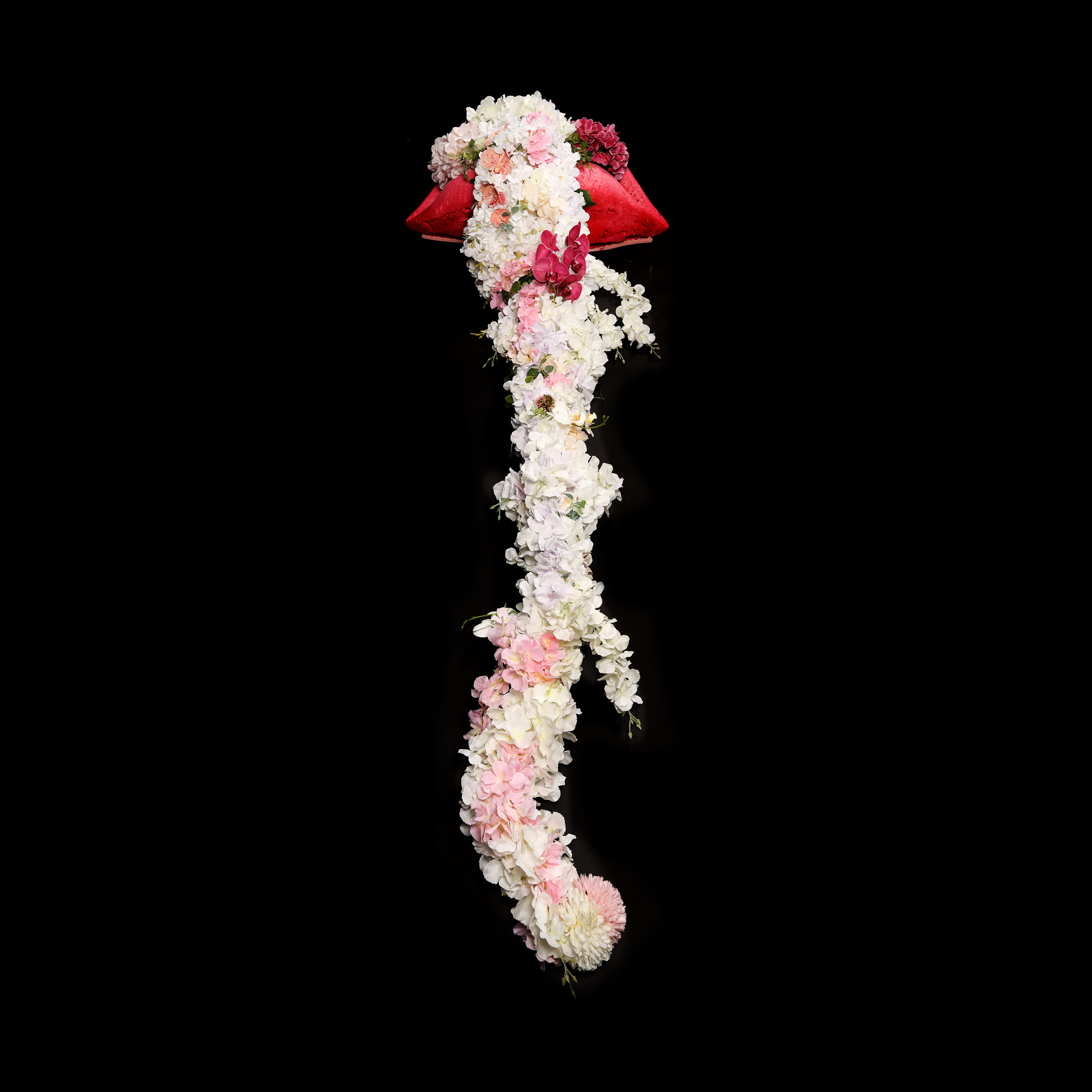 instalație (spumă poliuretanică, culori acrilice, flori artificiale)
