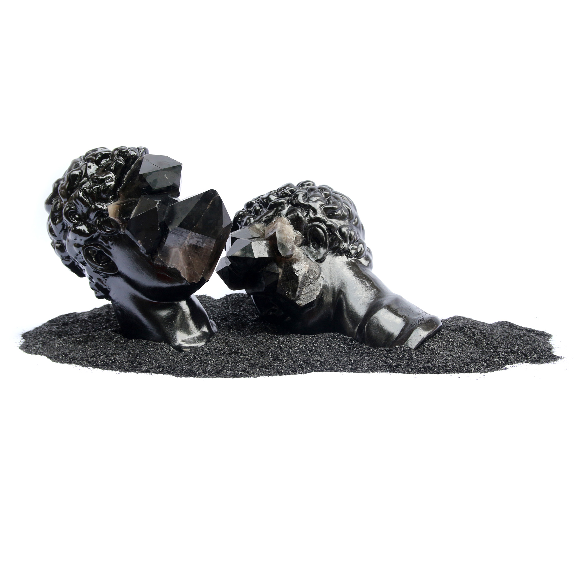 spray pe ipsos, quartz fumuriu (obsidian), granule de baiț
