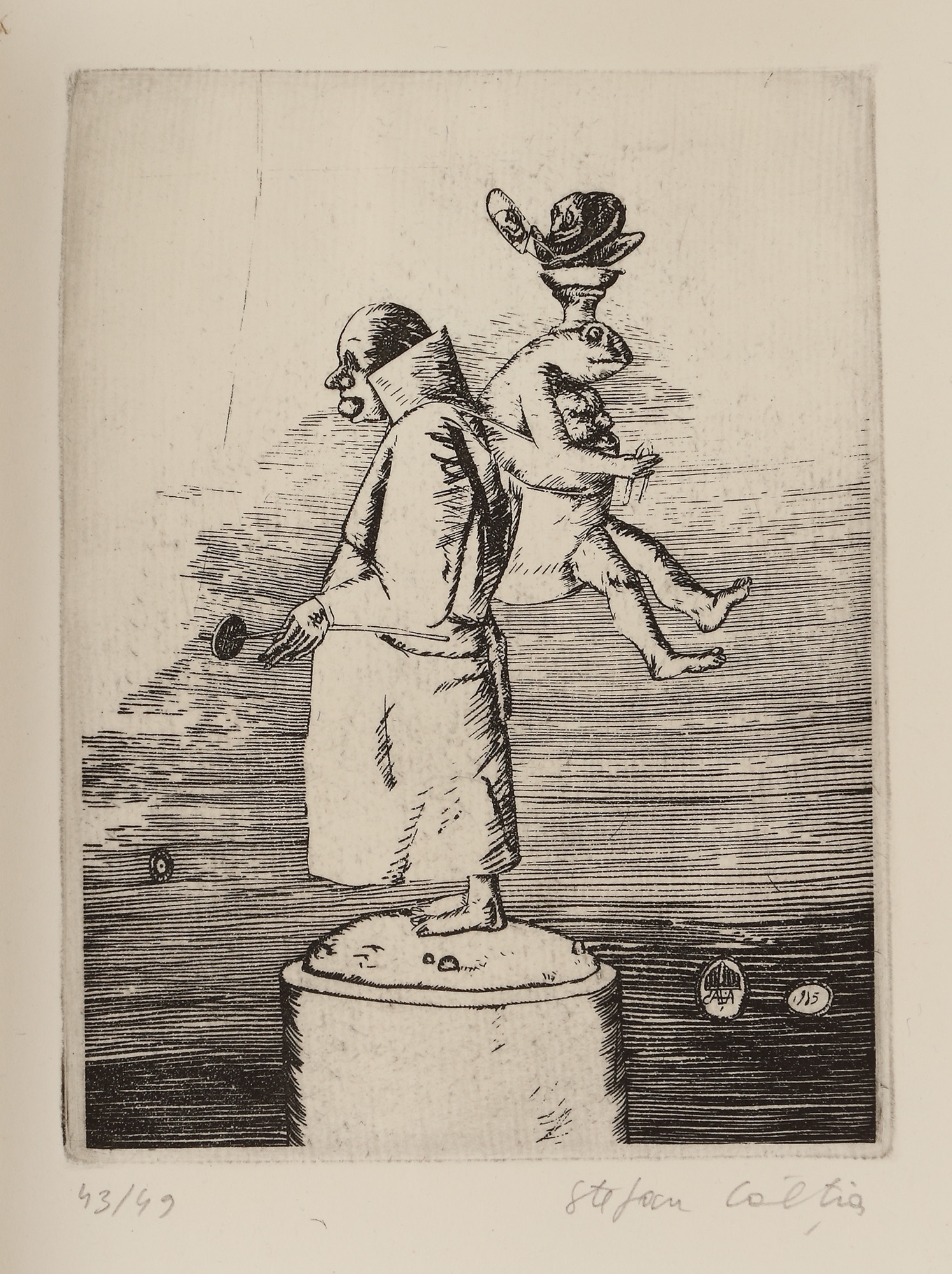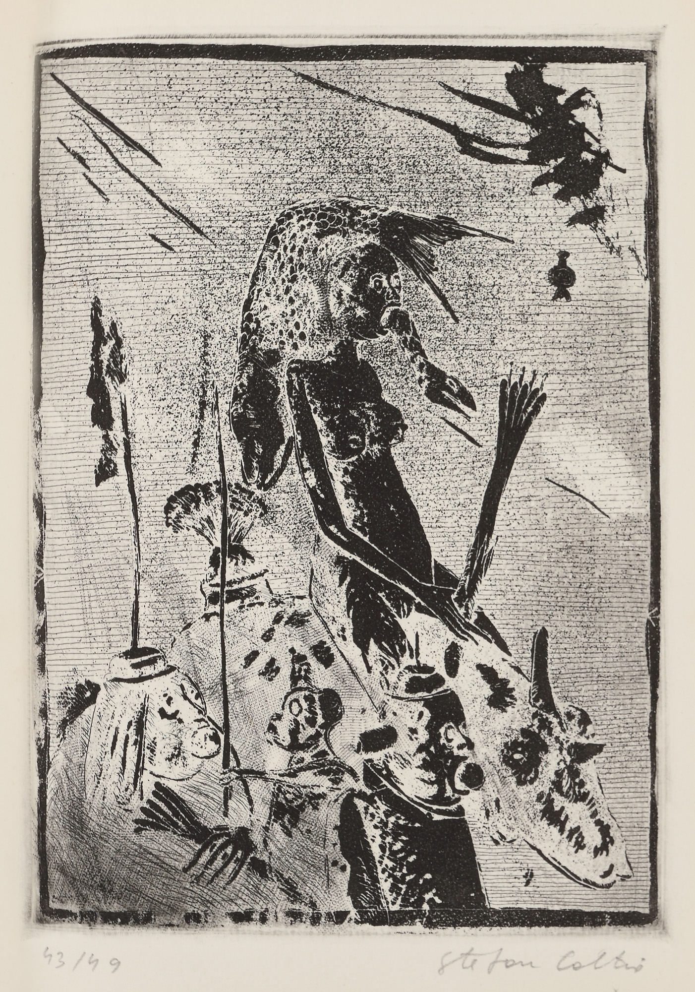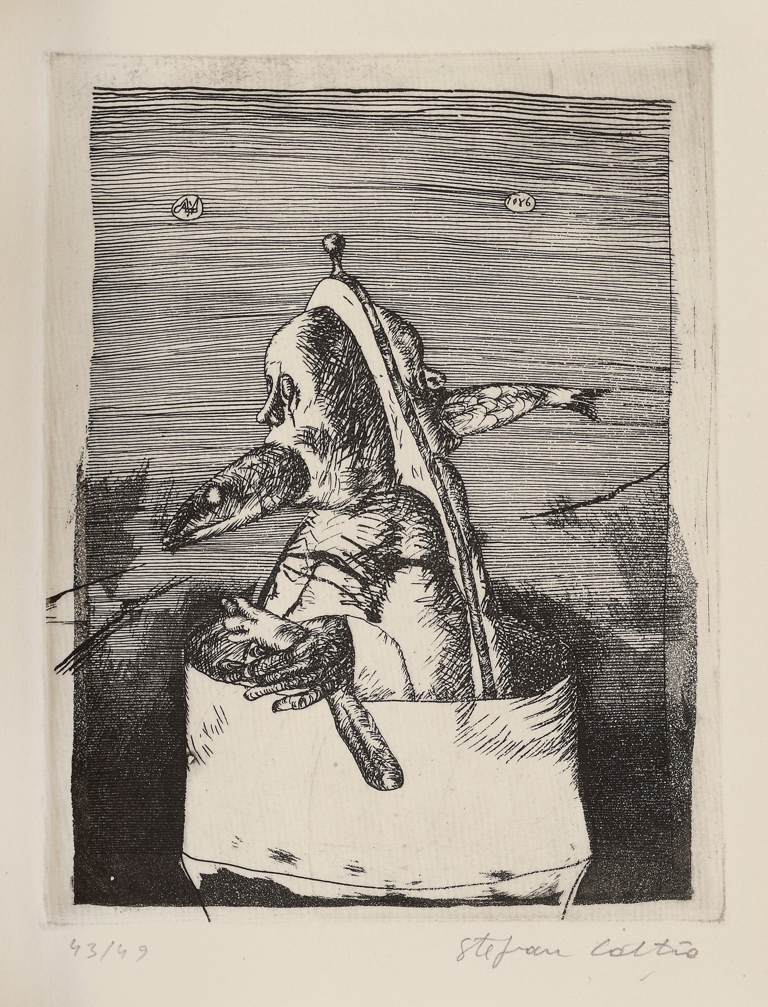 semnat și datat în monogramă, pe copertă, "Câlția, 1987"; semnat dreapta jos, în creion, "Ştefan Câlţia"; numerotat stânga jos, în creion, "43/49"