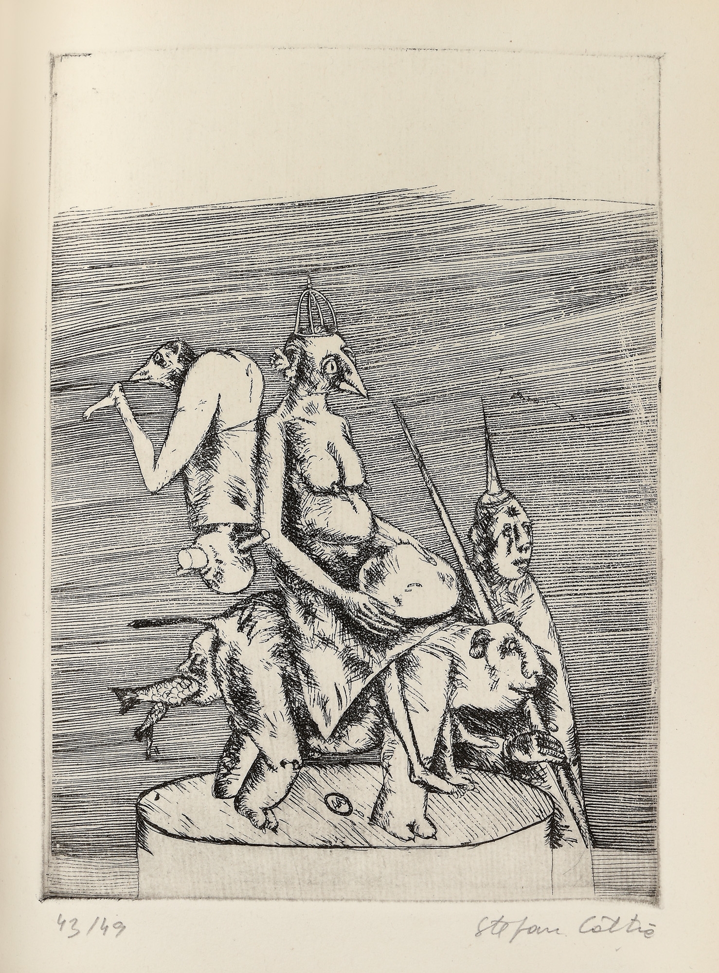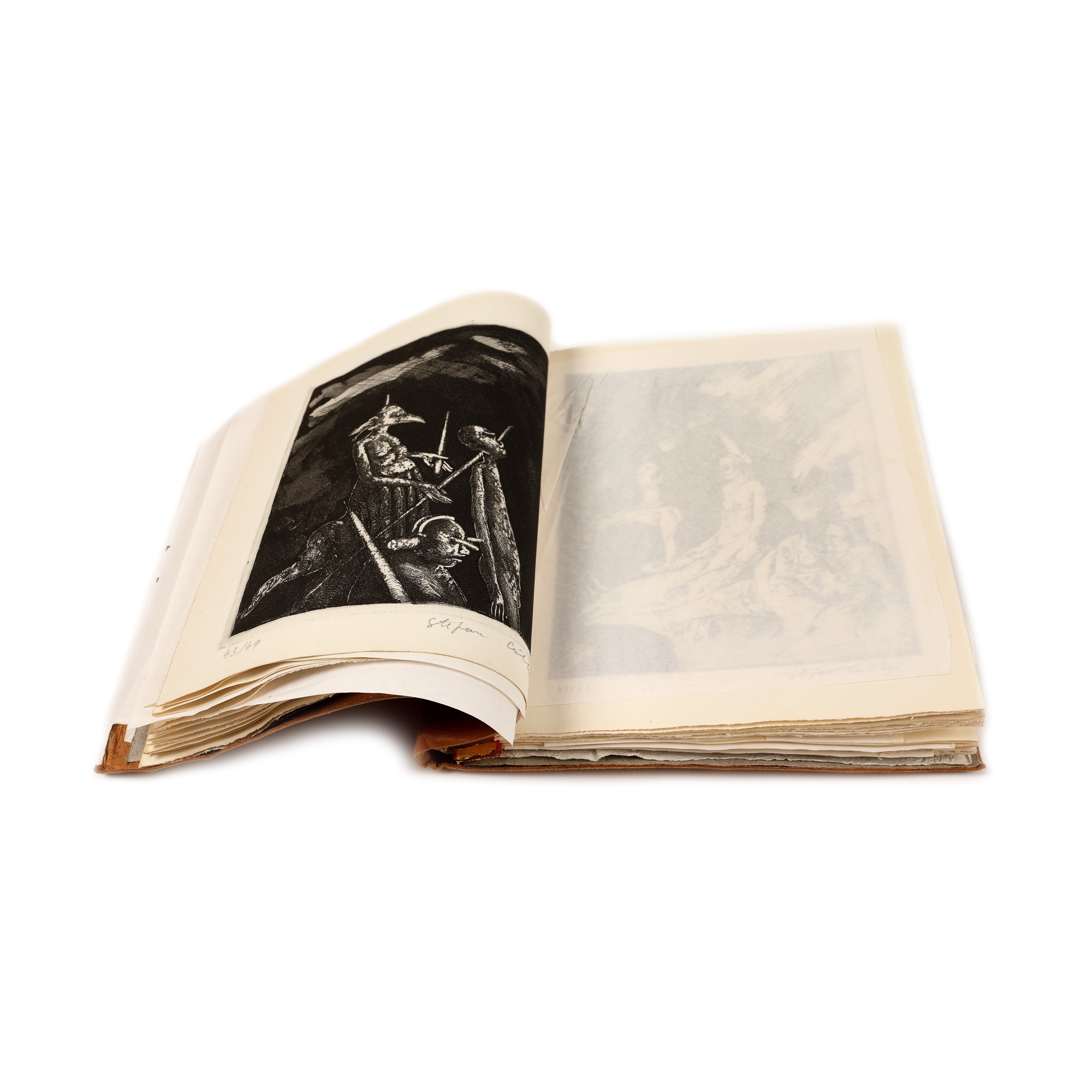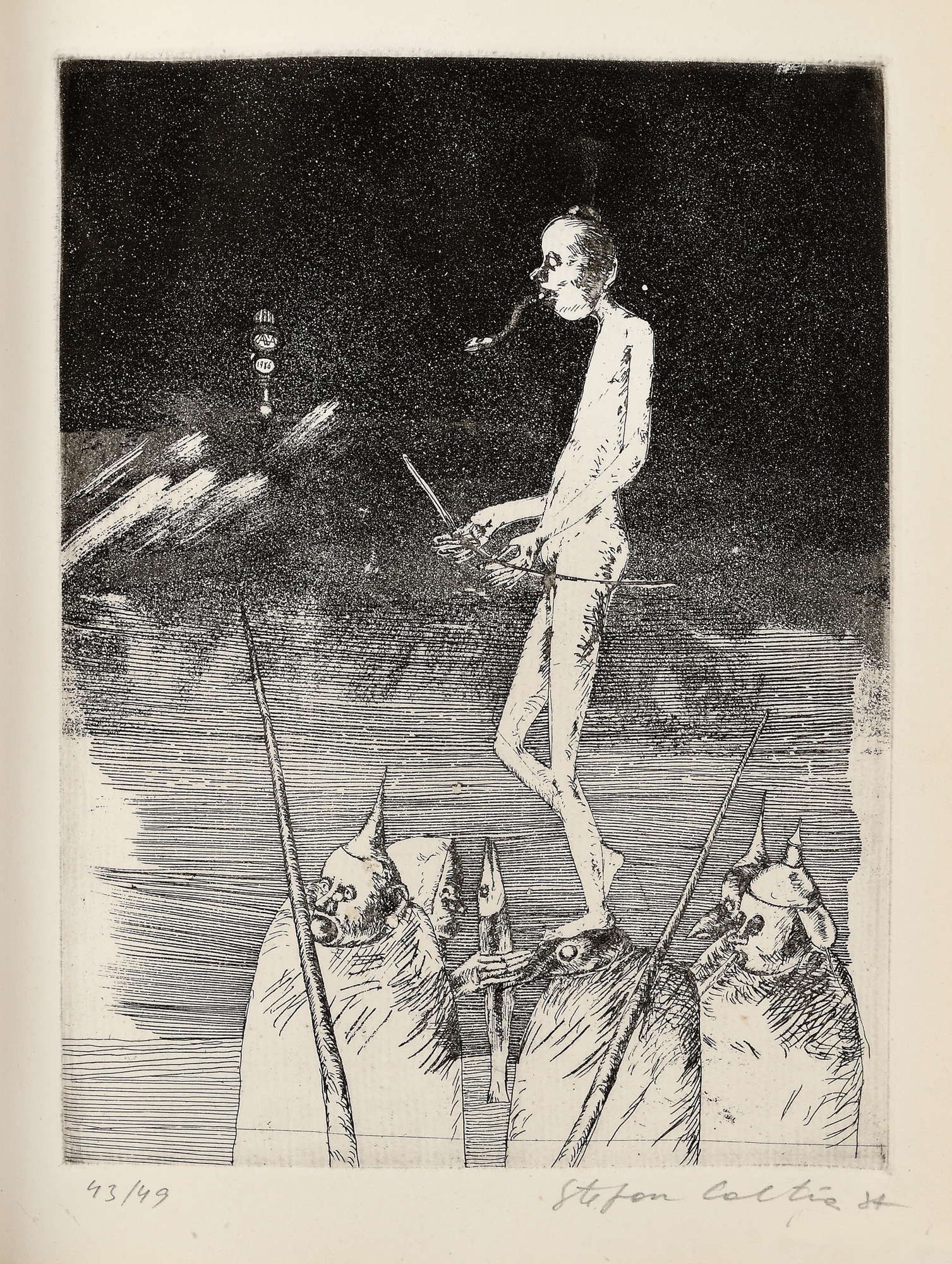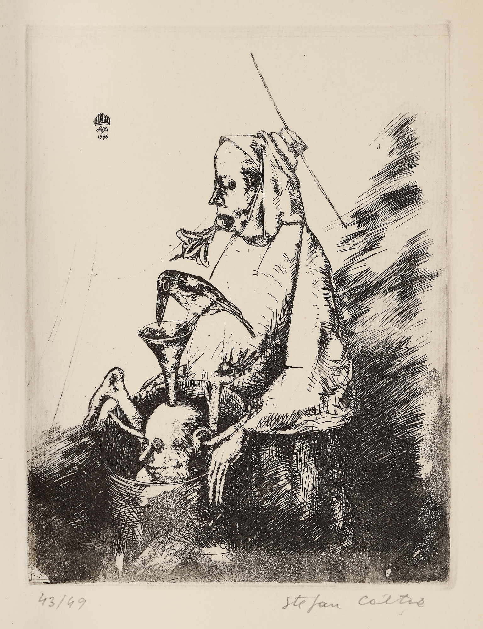 semnat și datat în monogramă, pe copertă, "Câlția, 1987"; semnat dreapta jos, în creion, "Ştefan Câlţia"; numerotat stânga jos, în creion, "43/49"