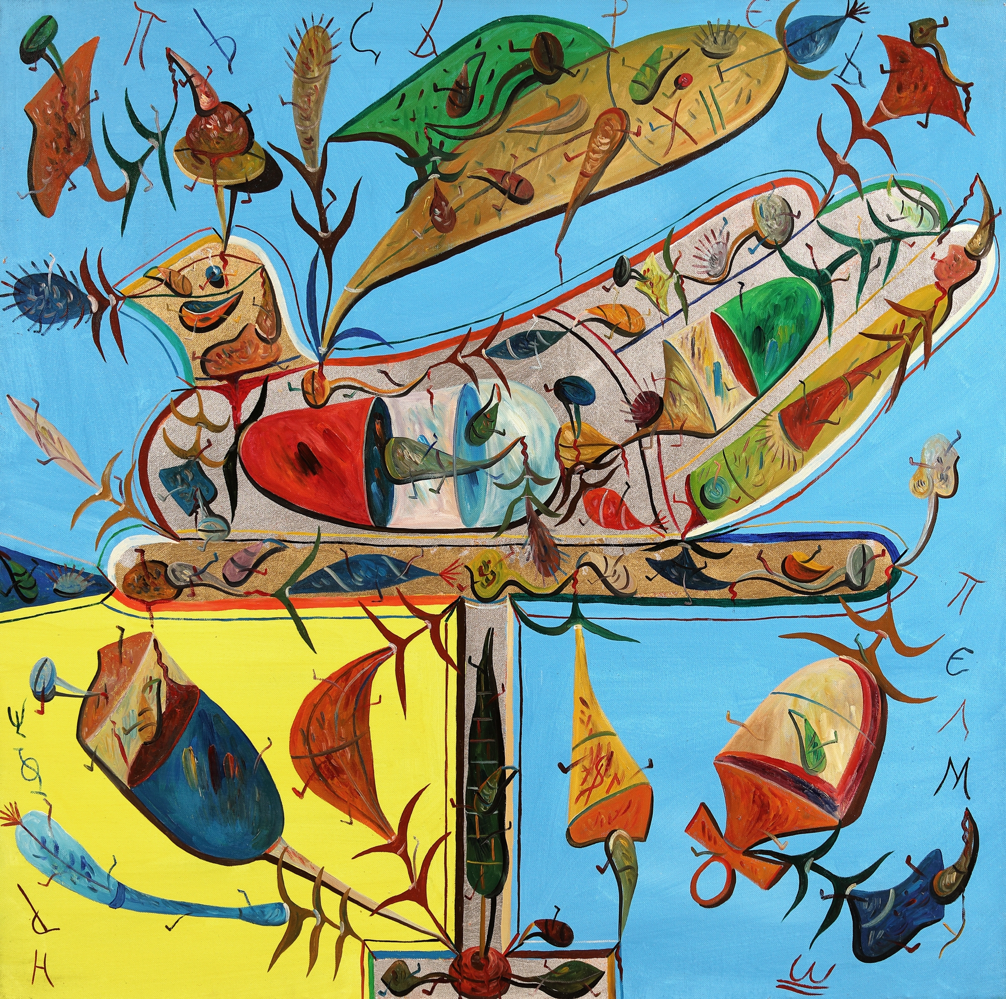 semnat central jos, cu roșu, "SP"; semnat, datat și intitulat pe verso, cu negru, "Pelmuș, Pasărea, 2011"