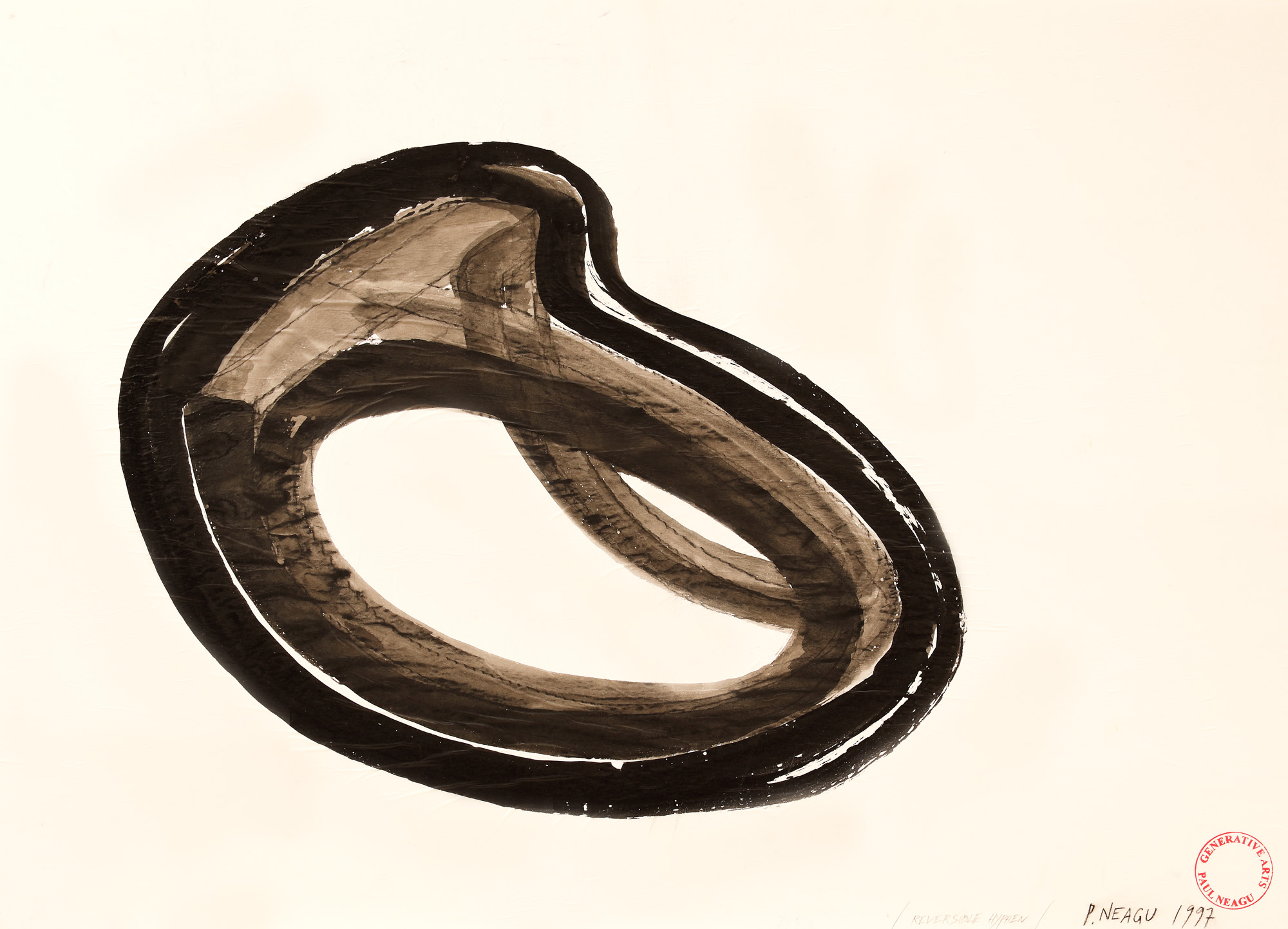 semnat, datat și intitulat dreapta jos, în creion, "P. NEAGU, 1997, Reversible Hyphen"