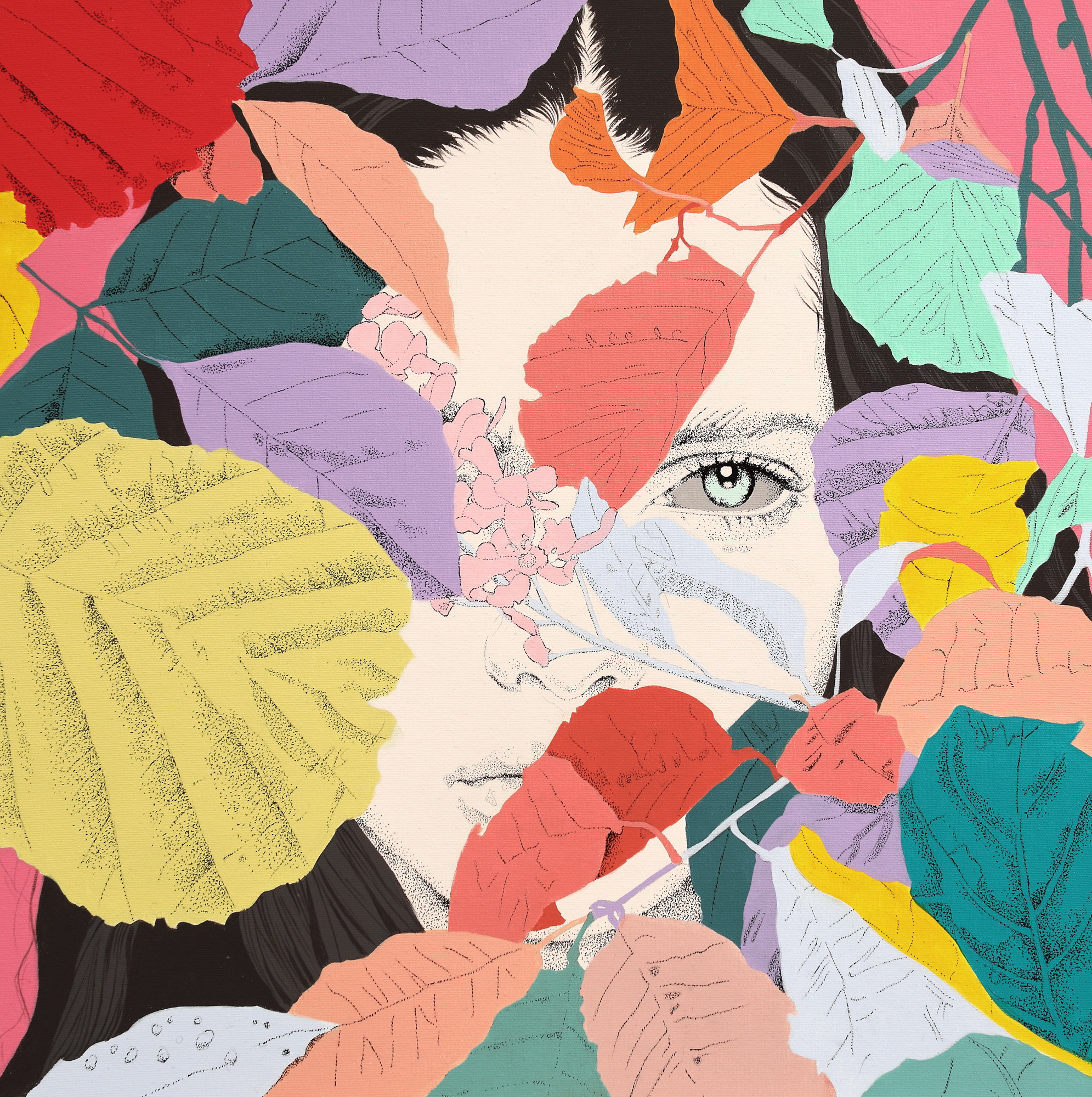 acrilic și tuș pe pânză