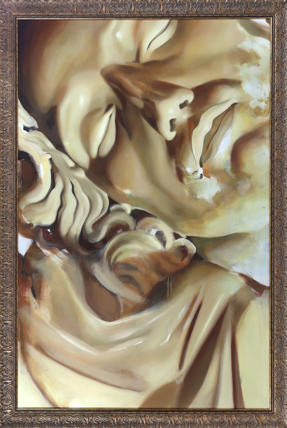 Pietà de Michelangelo (1498-1499) este mai mult decât celebră. Fotografiile, reproducerile, documentarele toate au prezentat-o și au fixat-o în memoria colectivă ca pe o capodoperă a lui Michelangelo și ca pe una dintre cele mai reușite reprezentări apusene ale ”coborârii de pe cruce”. Marea majoritate a acestor reprezentări ne evidențiază trupul inert al lui Hristos, poposind în brațele Fecioarei, chipul acesteia, trist dar solemn, mâna ei stângă, cu palma deschisă aproape a neputință sau a mângâiere ce urmează să fie, degetele mâinii ei drepte susținând trunchiul Fiului. Dar în toate aceste imagini ceva lipsește aproape de fiecare dată: chipul lui Hristos! Chipul personajului principal. Capul căzut pe spate, cu fața în sus, se sustrage obiectivelor foto, atunci când aparatele încearcă să cuprindă monumentul în ansamblul său. De asemenea, piedestalul pe care se află lucrarea, sustrage acest chip chiar și privitorului ori credinciosului. Acestora li se arată doar chipul Fecioarei, al Madonnei, al ”mijlocitoarei” prin definiție, mai ales în spațiul catolic. O îndrăzneală pe care mulți o trec cu vederea, ratând subtilitatea teologică a lui Michelangelo. Fiul este chipul văzut al lui Dumnezeu. Iar aici el, artistul, ni-l ascunde. Aflat între moarte și Înviere, Hristos este nevăzut. Poate fi doar ghicit fragmentar din anumite unghiuri și de la o anumită distanță, dar niciodată văzut în totalitate. Teona Todorel tocmai de acest chip nevăzut (deși prezent în lucrare) se ocupă. Ne oferă o perspectivă ”de sus”, ca și cum am pluti deasupra monumentului și ne-am apleca spre Cel care zace cu fața spre ceruri. Aproape o ”lucrare-studiu” prin care, în ulei pe pânză, ea ne ”povestește” realist și în detalii aproape academice această ”întâlnire”. Fața nevăzută a lui Hristos dintr-unul dintre cele mai celebre monumente din istoria artei devine aici o ”lucrare” în sine. Artista ne permite să-l privim pe Cel răstignit cu ochii Maicii Sale.