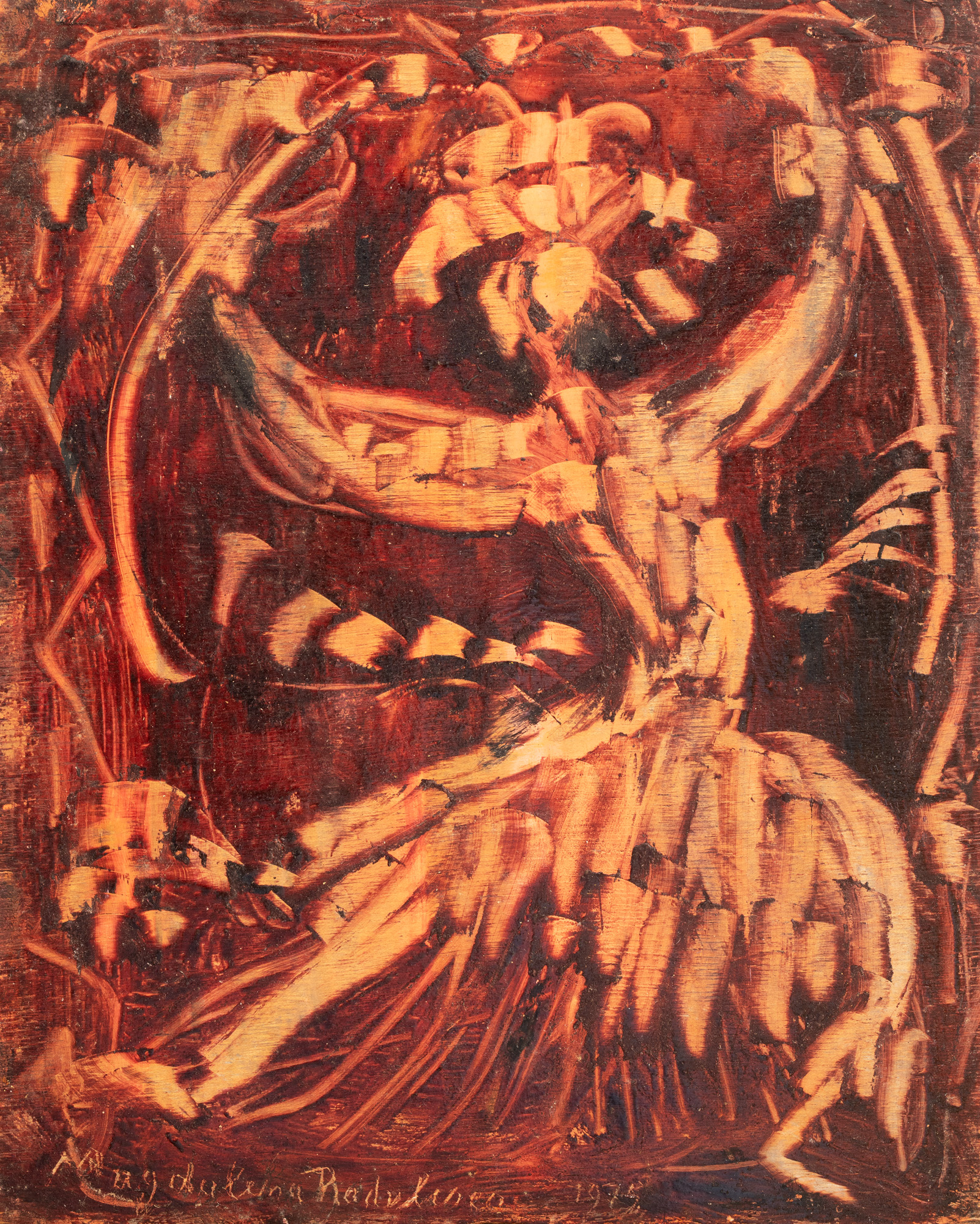 semnat și datat stânga jos, prin sgrafiere, ”Magdalena Rădulesco, 1974”