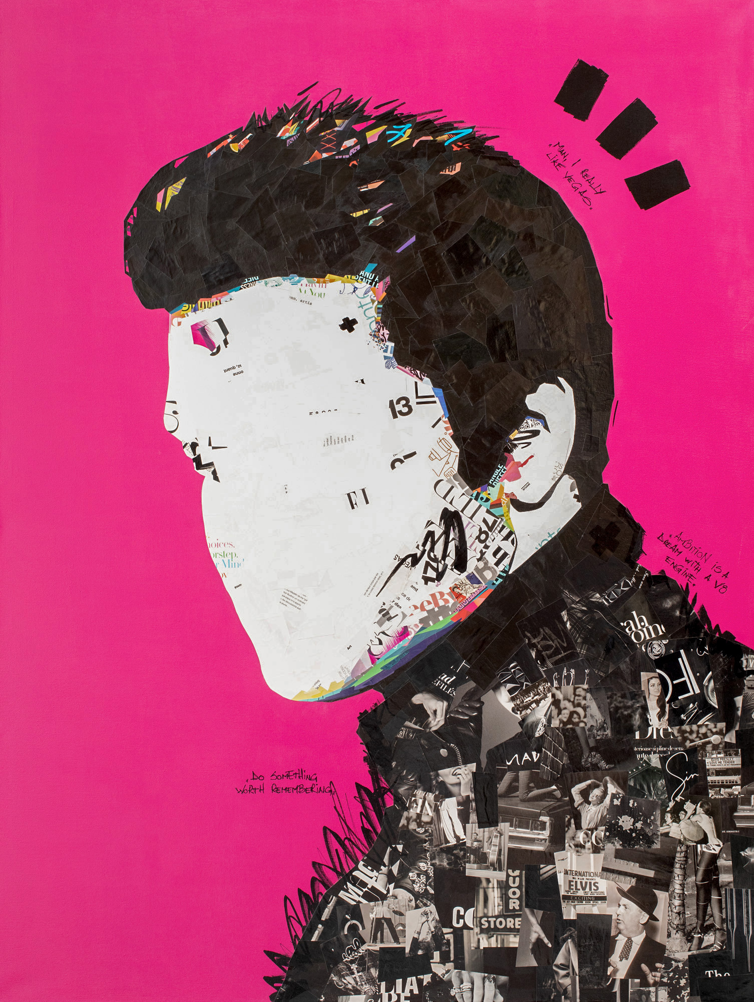 acrilic pe pânză, colaj din reviste reciclate, tăiate și lipite manual