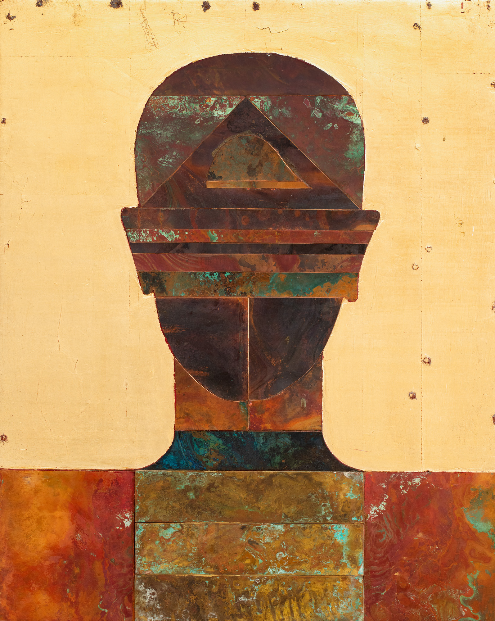 ulei, șchlag metal și inserții metalice pe lemn