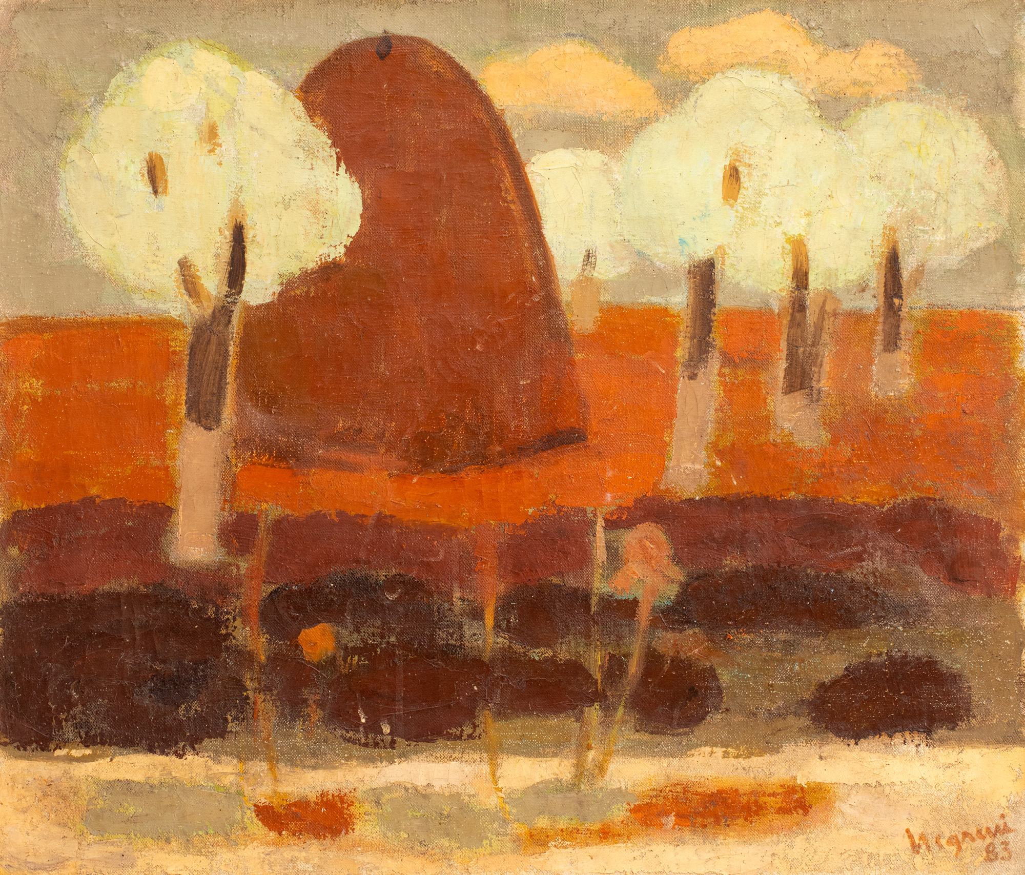 semnat și datat dreapta jos, cu oranj, ”Negreni, (19)83”