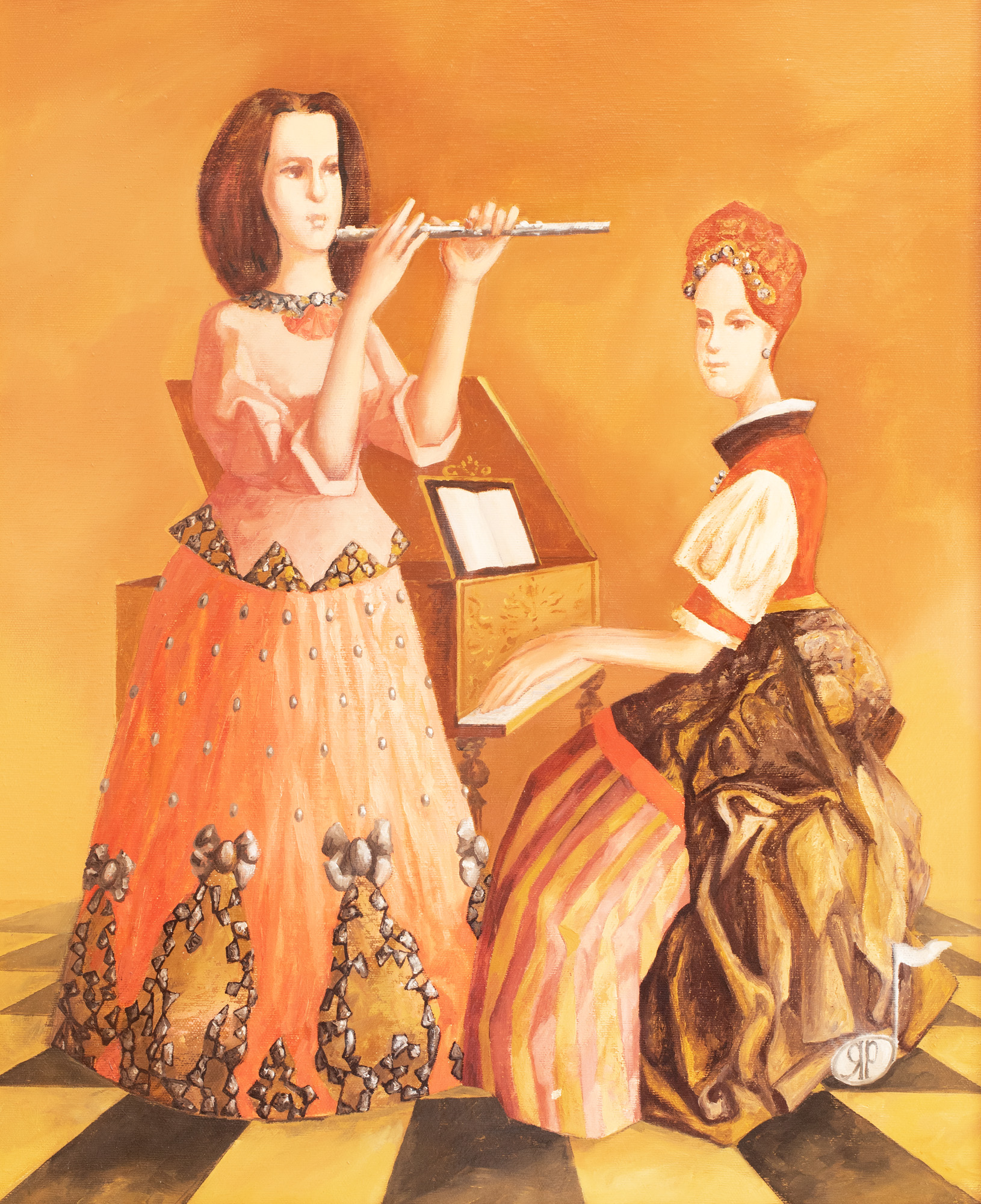 semnat dreapta jos, cu negru, în monogramă, "RP"